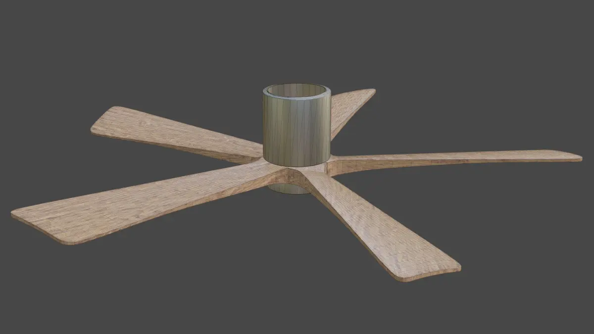 About the model:-Inside the blend file are four different collections labled with the respective model. High polygon, High polygon Triangulated, Low Polygon (LP), and Low Polygon Triangulated.-According to Blender this model has 59,898 verticies in the HP version, and 9,876 with the LP version (Again all four are in the blend file. -The OBJ and FBX files are exported from blender via the HP model. -Model has a axis inside the fan base which will allow for easy animation of the 5 blades. The blades are parented to the empty. -Colors are easily modifiable inside the shader tab of blender. Making the wood black stained looks very nice and is accomplished from changing the value in the shader tab to 0.All the parts of the model are easily recognizable by appropriate naming of pieces. -I will try to fix any critique either with this model or with future uploads. I am learning. Thank you.