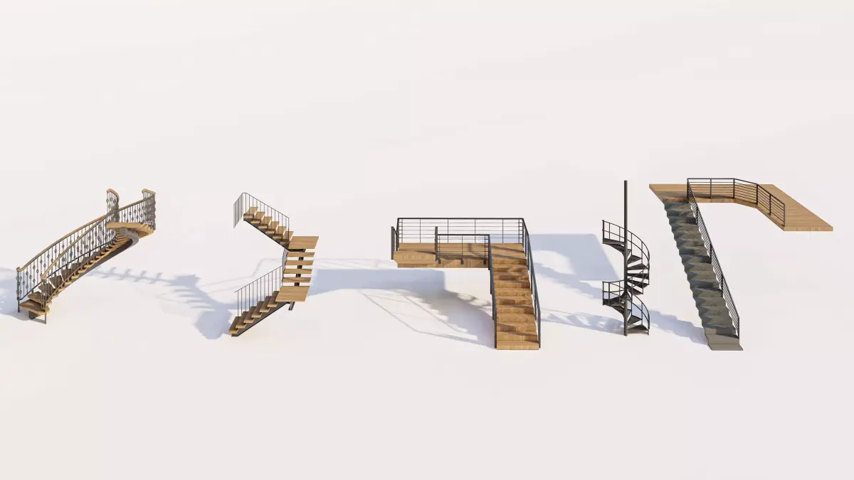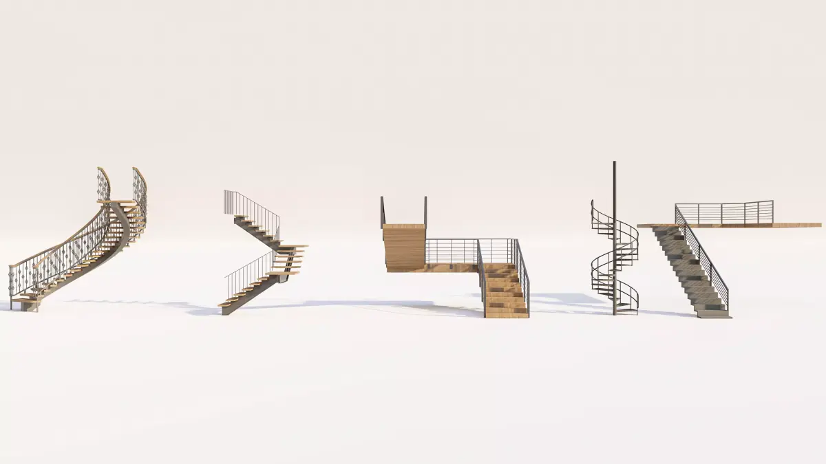 This is a premium 3D model collection of Modern Wood and Metal Staircases, designed for high-end residential and commercial architectural visualizations. This pack features a variety of contemporary structural designs, including floating treads and industrial-chic metal frames, providing a sophisticated vertical circulation solution for open-plan interiors.