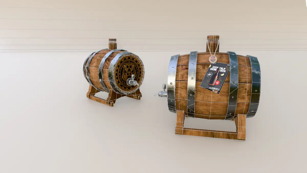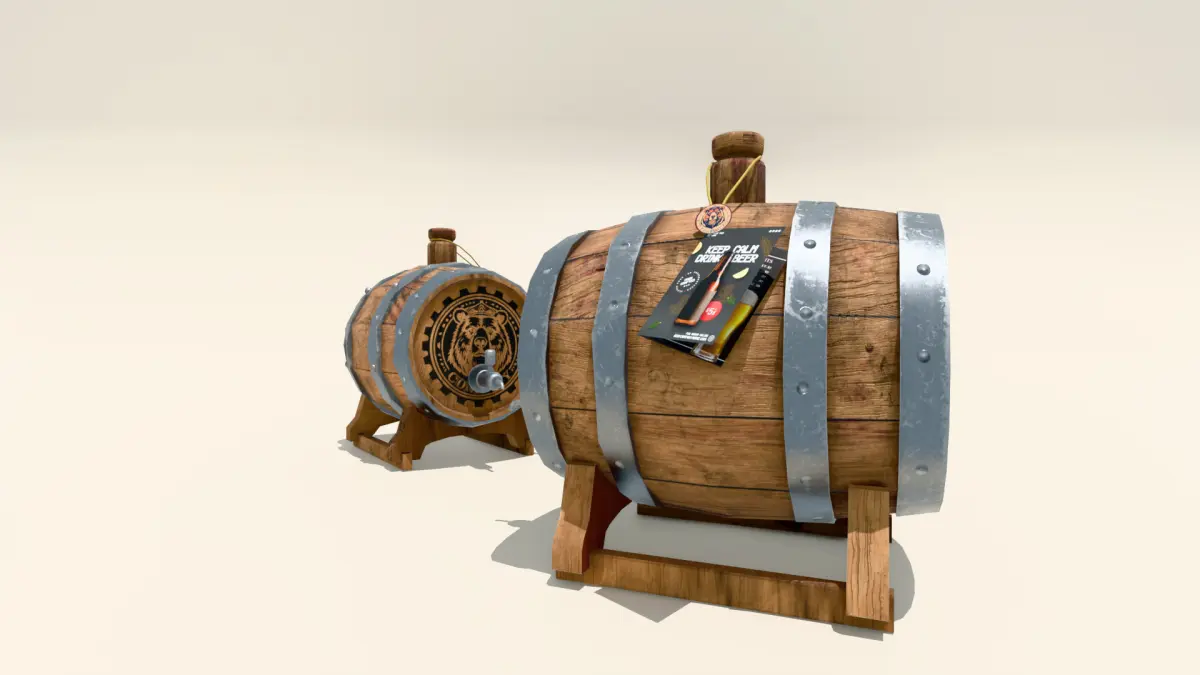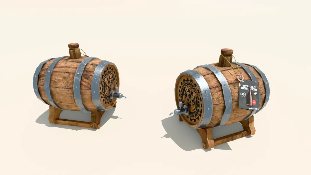 An old-styled 3D beer keg created for the purposes of gameplay prop and product presentation. The model was created with Blender, Substance Painter and Photoshop for textures tweaks. The model is optimized for basically every possible usage.