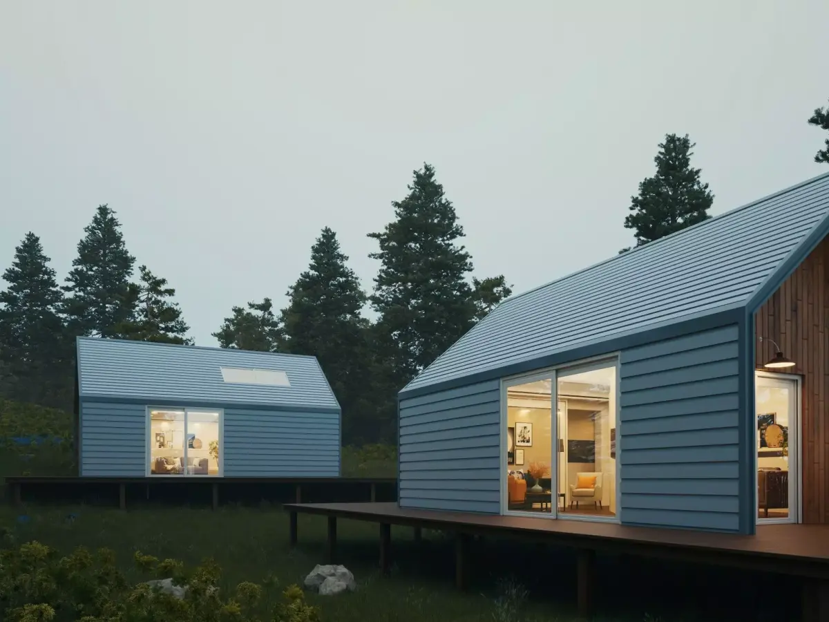 This 3D model represents a modern Nordic forest cabin, designed with a minimalist architectural language and inspired by Scandinavian residential architecture.The house features a simple pitched roof, clean geometry, wooden exterior cladding, and large windows that create a warm and inviting interior atmosphere.