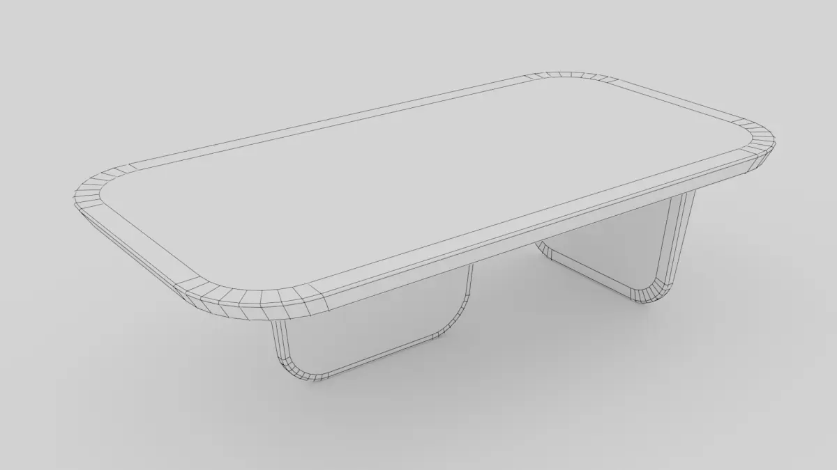 This is a high-quality 3D model of a modern wooden conference table, featuring a sleek rectangular top with smoothly rounded edges. The design includes two solid base legs that provide a sturdy and stylish foundation, perfect for both professional meeting spaces and contemporary dining rooms.