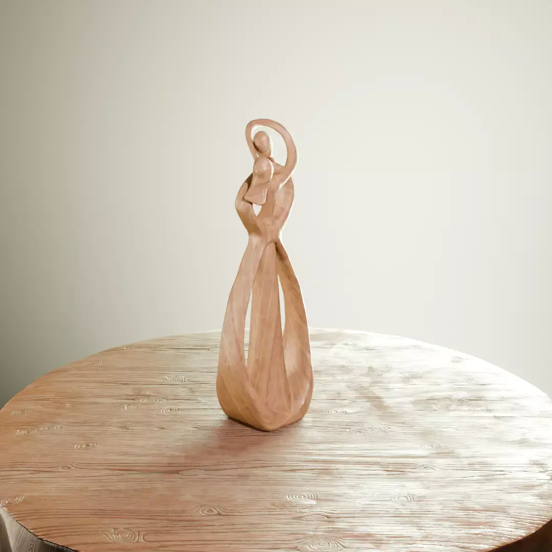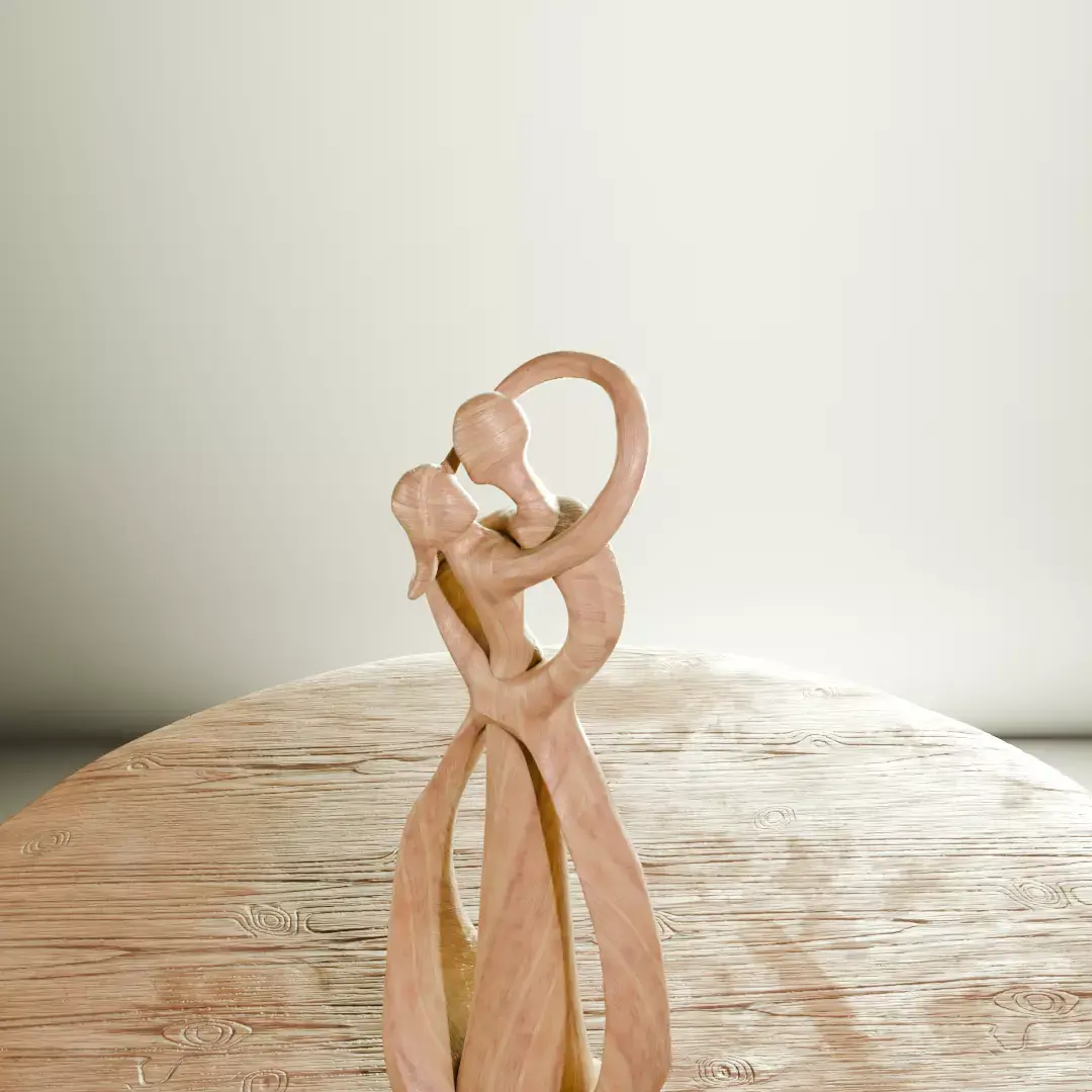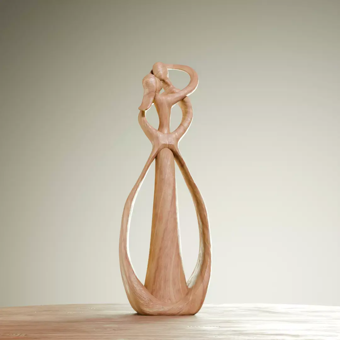 This abstract 3D sculpture represents an intimate embrace through flowing, continuous forms and minimal human silhouettes. The elongated structure and open negative spaces create a sense of lightness, balance, and emotional connection, making it a striking decorative art piece for modern interiors.