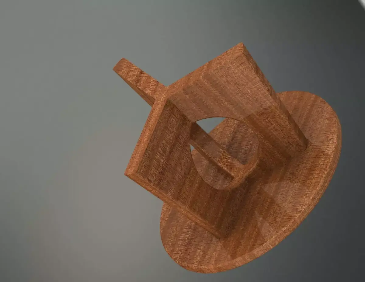 A modern wooden side table (1:1) featuring a round tabletop and sculptural geometric legs. The design combines natural wood aesthetics with a minimalist, contemporary form, making it suitable for interior visualizations, architectural renders, and product presentations.
