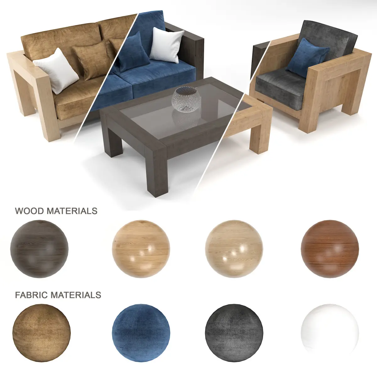 Modern Wooden SofaDetailed HD Set of Models of Sofa & Coffee Table with proper Dimensions & Textures