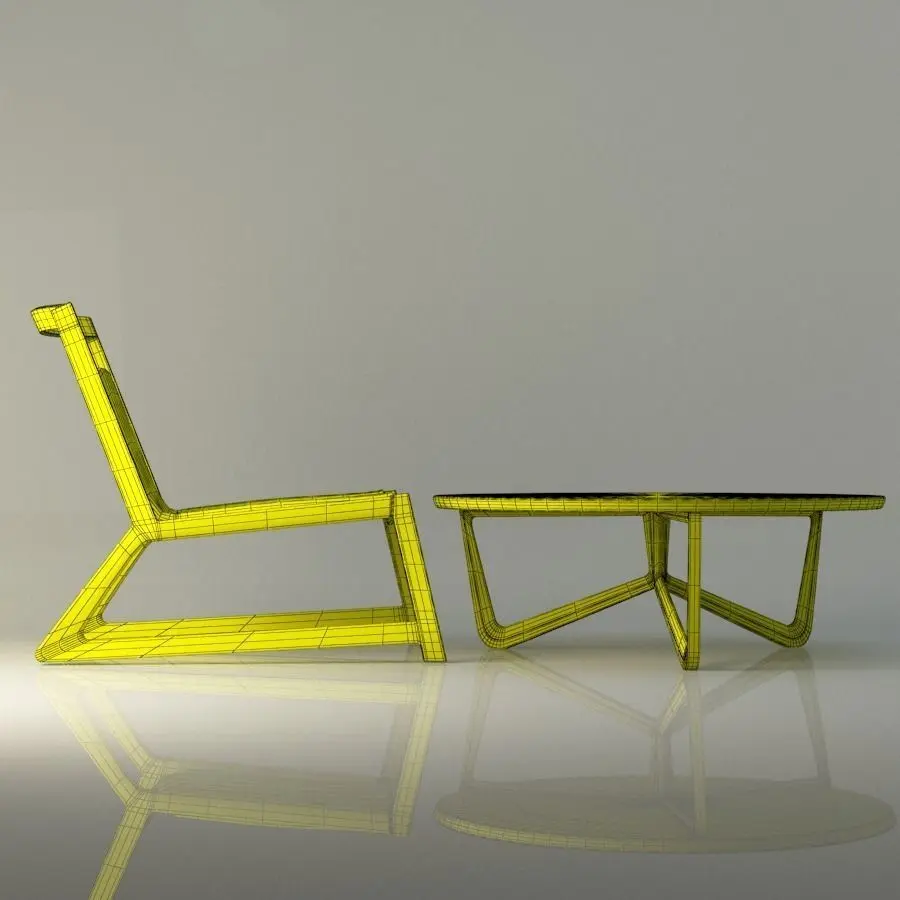 Modern Wooden table and chair 3D model