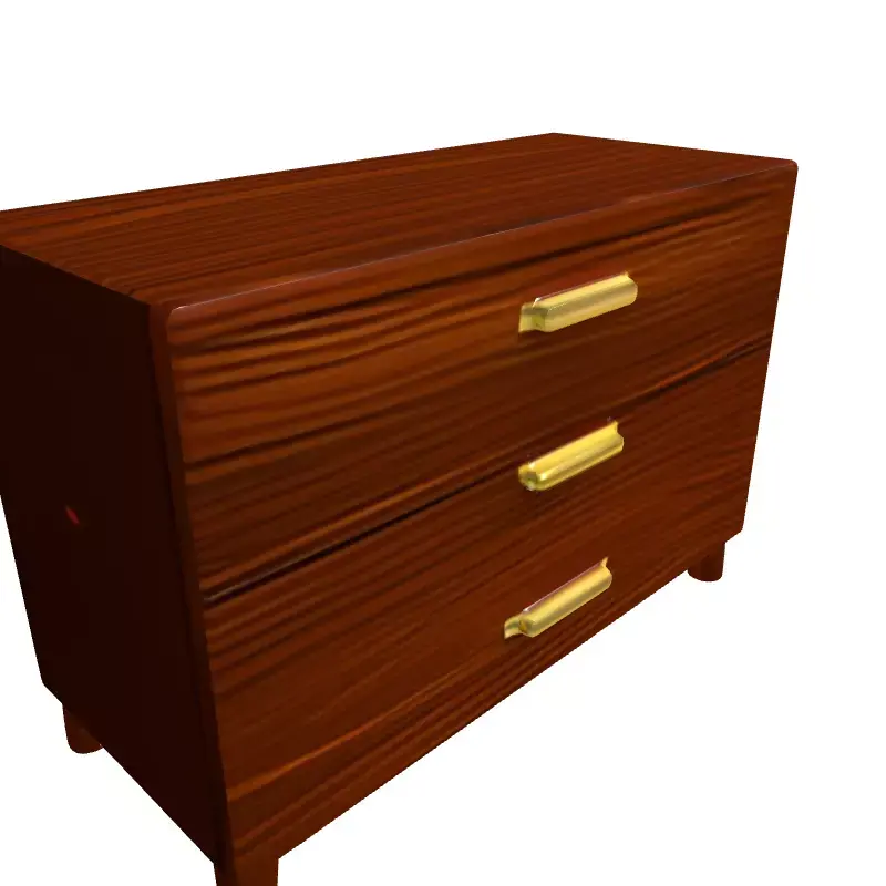 This exquisitely crafted 3D model represents a modern wooden three-drawer dresser, perfect for adding a touch of contemporary elegance to any digital scene. Featuring a rich, warm wood grain finish and sleek golden handles, this piece combines functionality with sophisticated design. It is ideal for various applications, including interior architectural visualizations, realistic game environments, virtual reality (VR) and augmented reality (AR) experiences, and digital art projects. The model is meticulously detailed, ensuring a high level of realism in renders and close-up shots. With clean topology and efficient polycount, it is optimized for real-time applications while maintaining visual fidelity for static renderings. It comes fully UV unwrapped with high-quality PBR (Physically Based Rendering) textures, guaranteeing realistic material representation under diverse lighting conditions. Supported file formats typically include GLB, FBX, OBJ, USD, DAE, and ABC, making it versatile for integration into various 3D software and engines. Whether populating a bedroom, living room, or office interior, this dresser provides a professional and ready-to-use asset for your creative needs. Its accurate scale and attention to detail ensure a seamless fit into any project.