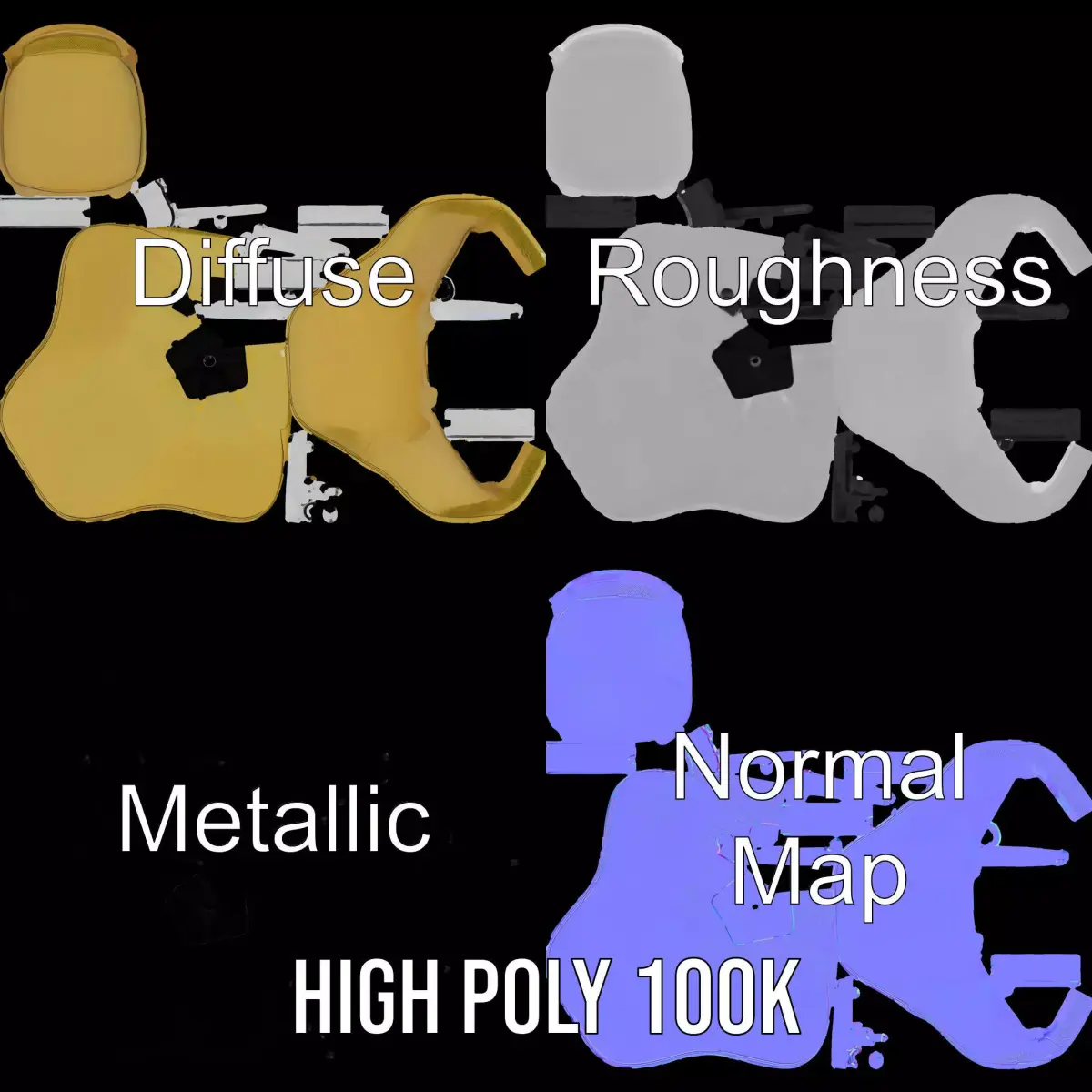 This stylish and comfortable yellow armchair model is perfect for enhancing modern interior designs. Its contemporary look and ergonomic design make it ideal for both residential and commercial spaces. The model is available in three levels of detail: low-poly (1000 triangles) for mobile, middle-poly (10,000 triangles) for environments, and high-poly (100,000 triangles) for detailed renderings, allowing versatile use in production, game engines, and interactive presentations. PBR textures, including Diffuse, NormalMap, and reflection/roughness/metallic, ensure high-quality rendering in all modern engines. All textures are 4096x4096 in size, providing exceptional detail. The models are accurately unwrapped with no overlapping UVs. Perfect for virtual staging, architectural visualization, or game development. Please like and comment if you enjoyed this model!