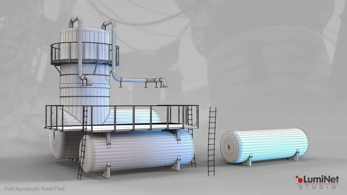 The model is part of a complete environment pack on the link below: https://www.cgtrader.com/3d-models/industrial/industrial-part/postapoassetspack