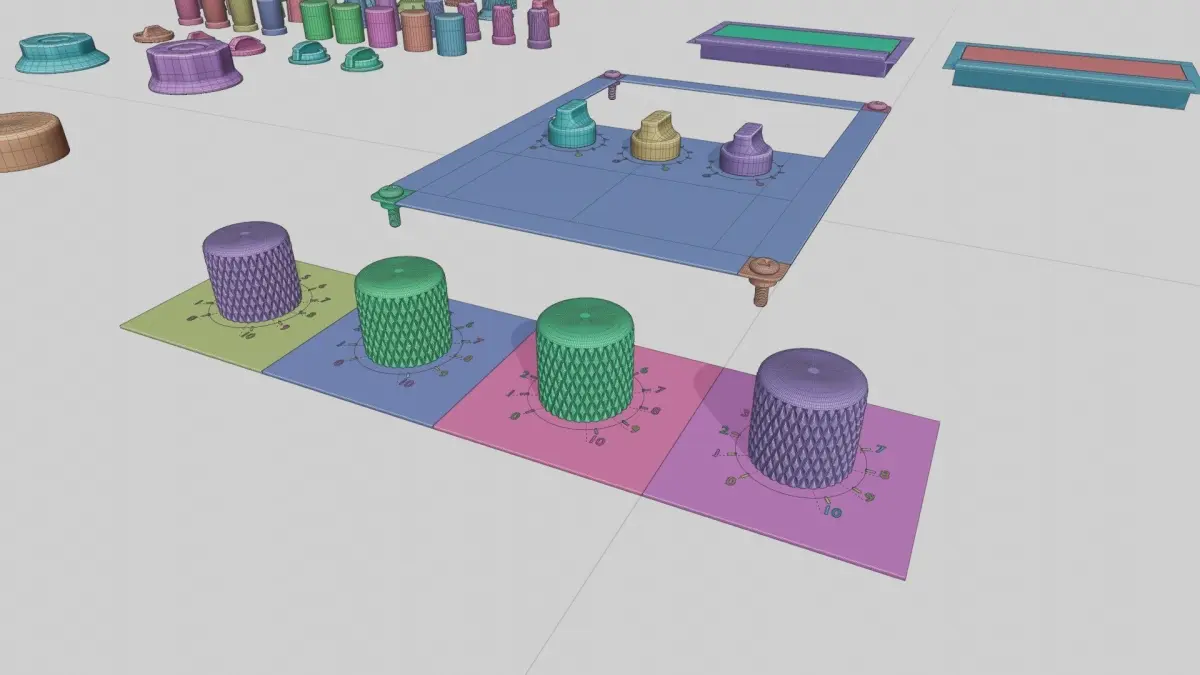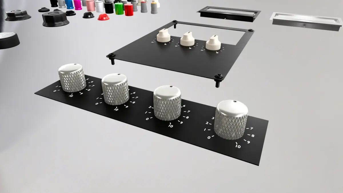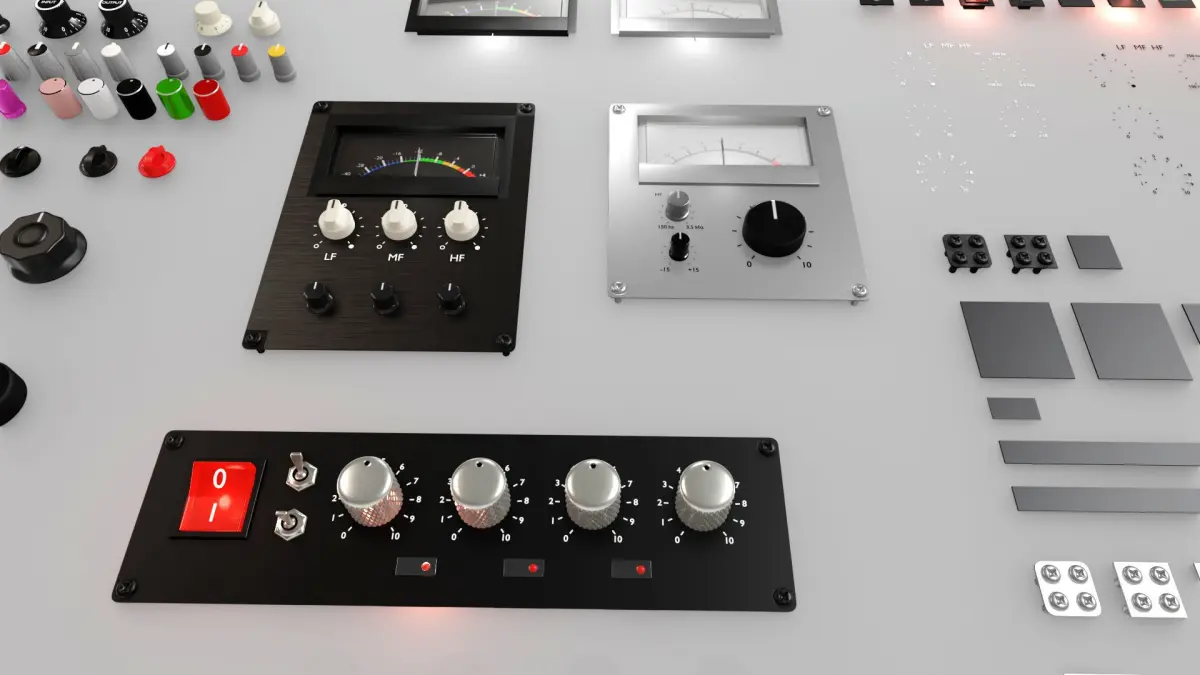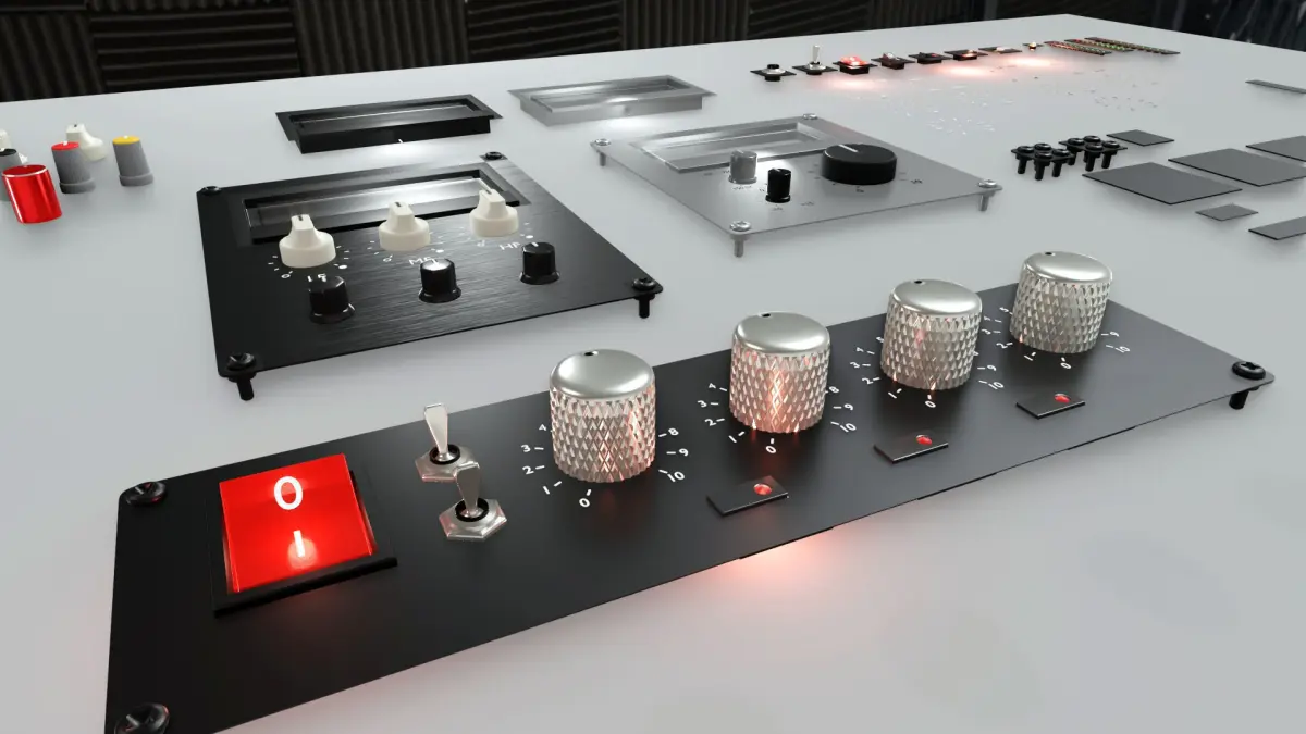 A set of 3D knobs, switches and meters (VU RMS) modelled and inspired by famous amps, preamps and mixer consoles.Modular project scene setup so you can build/design your own preamp, console, amp, guitar amp, mixer etc.Uses grid snapping so it's easy to join the modular plate pieces together.