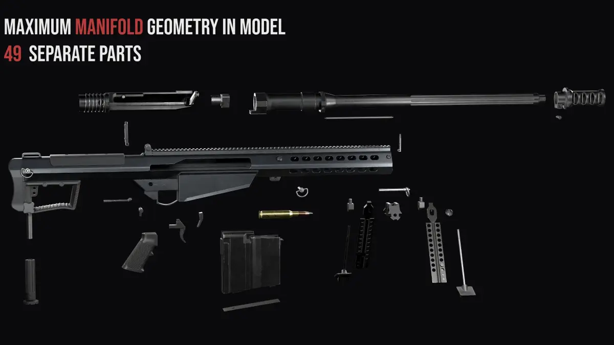 The quality game-ready model Anti materiel sniper rifle Barrett M107A1 , created as close as possible to the original with exact dimensions. The model has high-quality PBR textures in 4k, also including textures for Unity and UE5 game engines. I create my models as realistic as possible. You won't see the magazine shaft , barrel, chamber or bolt , covered by the texture or geometry. If you even need to see the rifling in the barrel or any other small details of the weapon. Then this model is exactly for your project. Maximum manifold geometry in model. Open (non-manifold) geometry is only present in rare cases,but you will never see it even with any weapon animation and other manipulations. Low-poly Barrett M107A1 for PBR game engines, renderers, first Person Shooters, VR games, and your other projects.
