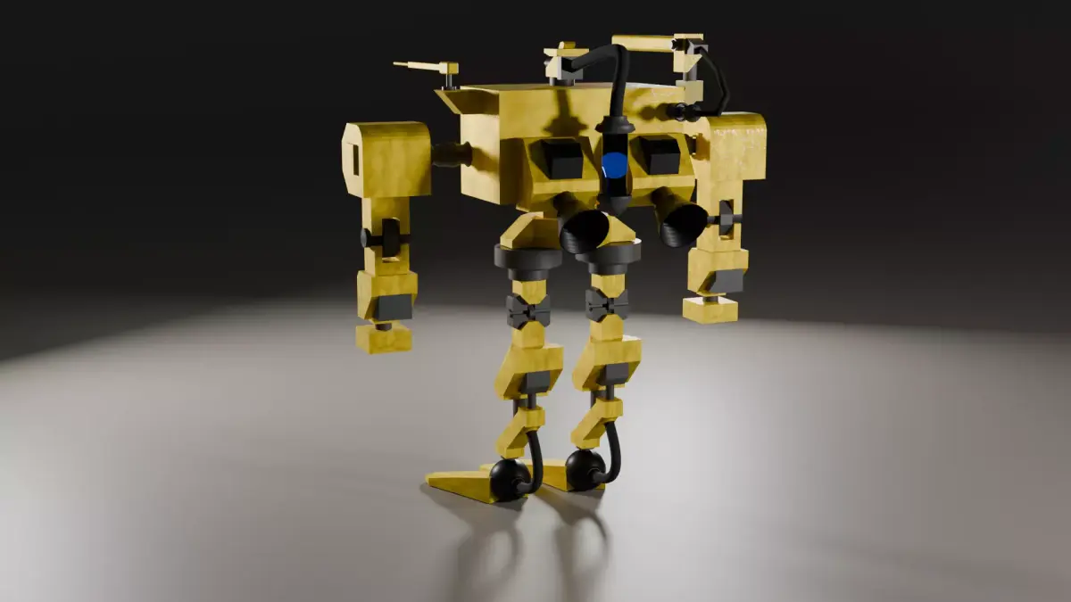 Unleash this detailed Modular Battle Mech Robot, crafted in Blender 4.5 for your 3D modeling projects. Despite its industrial golden-yellow and black color scheme, this rugged, quadruped-inspired design is built for combat, featuring a blocky, geometric structure with articulated joints, hydraulic pistons, and customizable weapon attachments like claw grippers and welders. Perfect for animations, renders, or further modifications.Key Features: