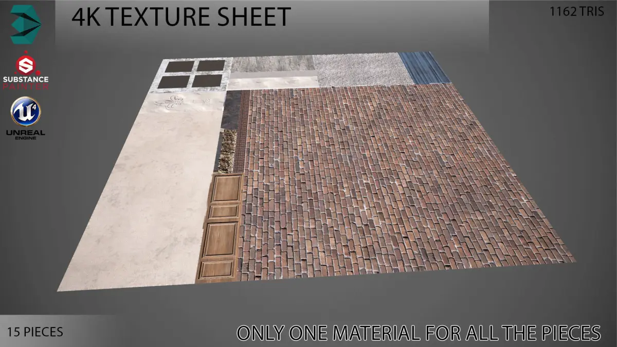 High quality low poly game ready modular building pieces :15 pieces to creat your own building design with as many floors as you like ..