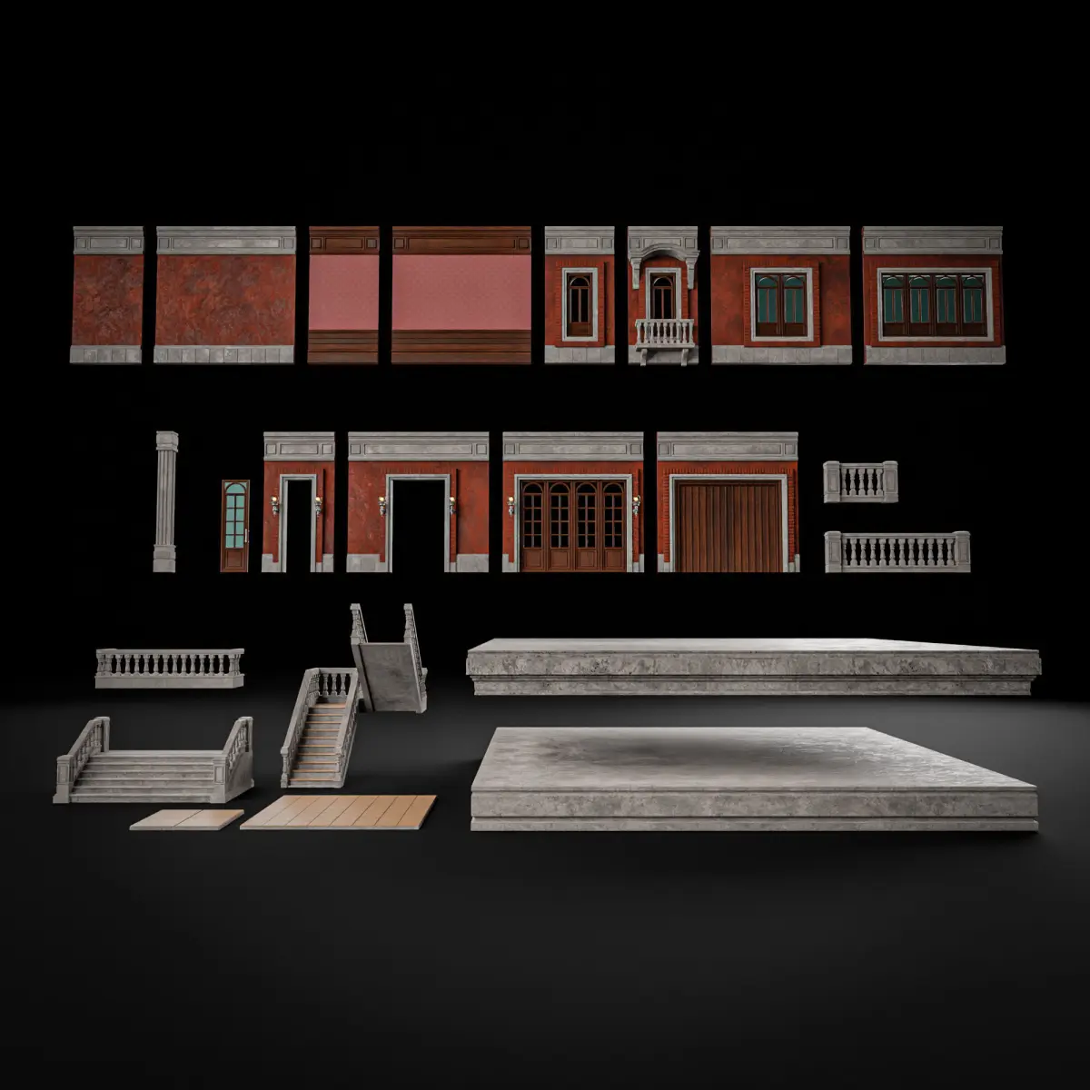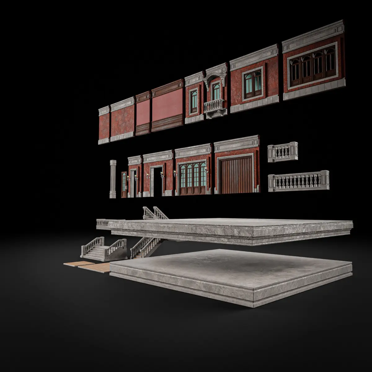 MODULAR BUILDING WITH INTERIOR KITBASH 06--------the most complete kit to design your own style building--------can be arranged freely----endless possibilities----endless design-------------multiple floors------high quality model with clean topology and quad only---- American style building--------I also provide a building that have been made with this kits, all poly is a quad poly model and ensures that it is easier and more efficient for you to use it. You can save a lot by buying the PACK that I have prepared on my page along with the demo file in UNREAL ENGINE 5 and BLENDER as in the video. good luck and thank you.