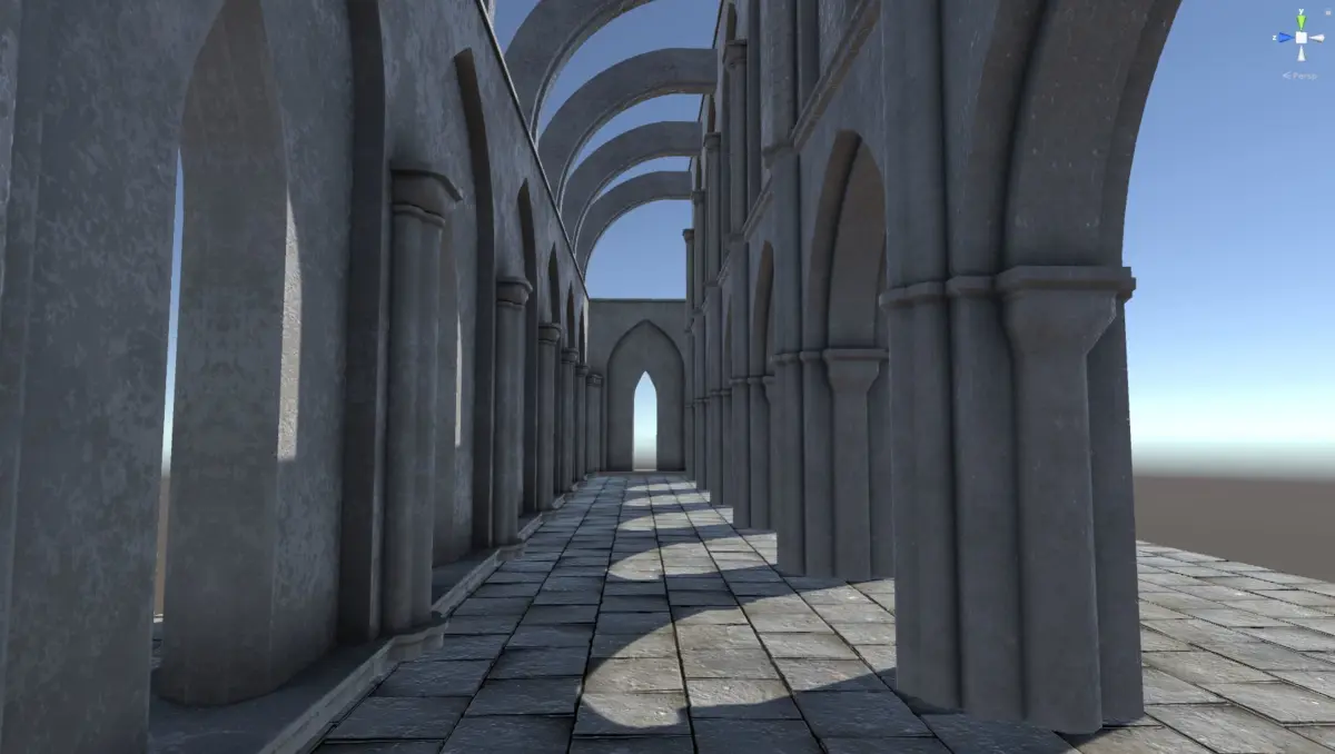 The walls and pillars have both sides with mirrored textures, so these can be rotated and copied to easily create larger environments.
