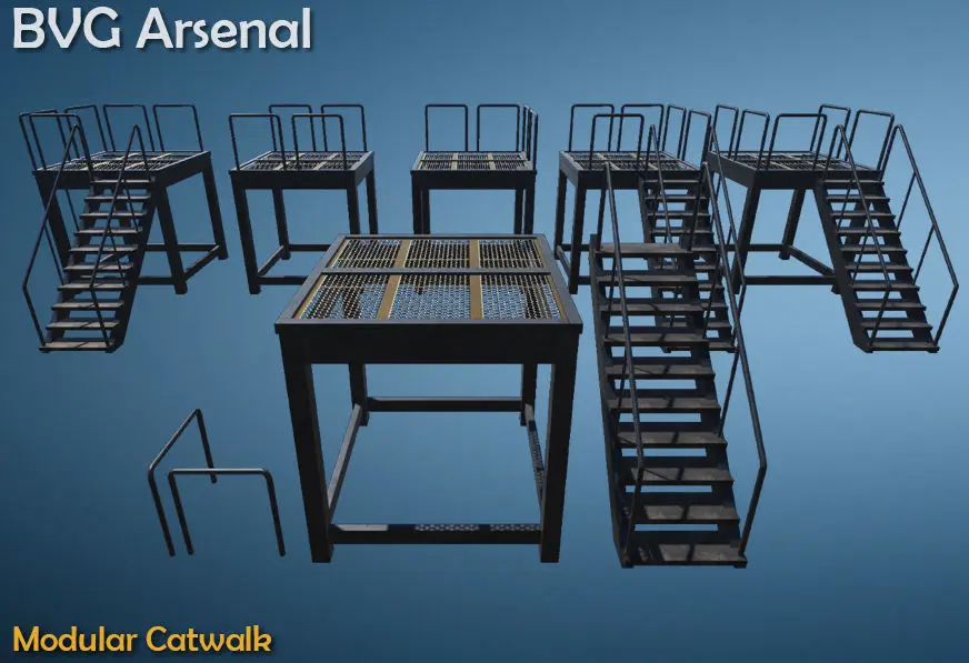 Modular catwalk. Game ready, detailed enough for close-up renders.
