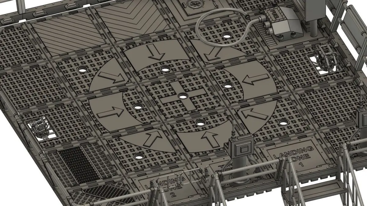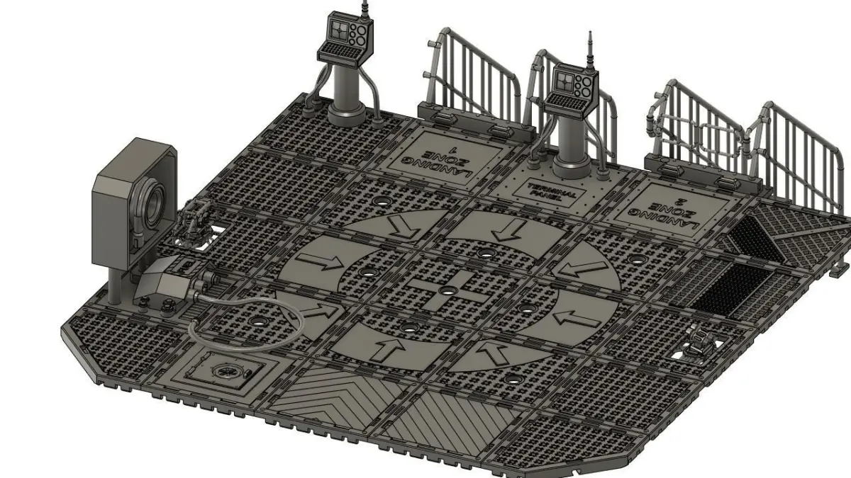 A landing pad set for my CATWALK modular systemThe kit is prepared for the installation of LEDs as lighting for the landing site. (soon I will insert grilles for the version without LED).The kit includes: