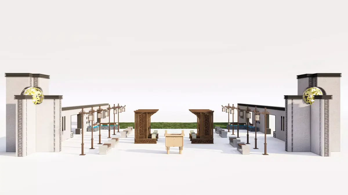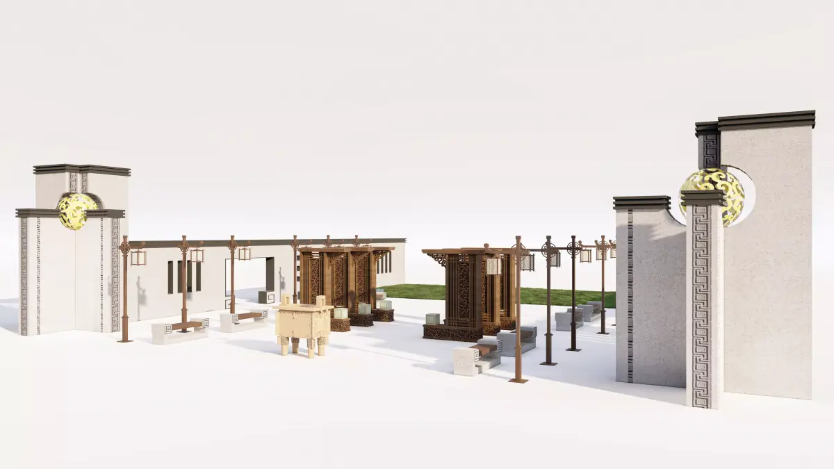 This is a comprehensive 3D asset pack featuring modular components for creating highly detailed, authentic Traditional East Asian (Oriental) exterior scenes, perfect for parks, temple grounds, historical streetscapes, or luxury garden designs.