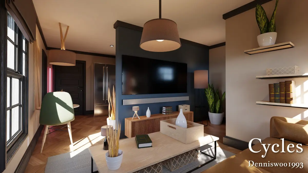 This is a high quality modular house with a fully furnished interior for Blender Eevee and Cycles. Everything is textured with CC0 (copyright free) textures and modeled by me.All the lighting is baked for Eevee (both day and night) for high performance renders.Also works for Cycles renders. You will receive the file with everything included as displayed in the renders.Doors and windows are animated. Slide timeline at the bottom to open doors and windows.