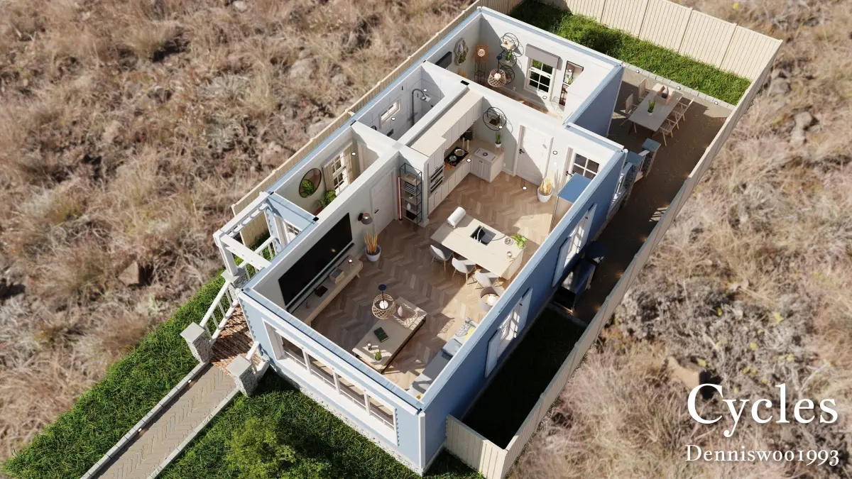 This is a high quality modular house with a fully furnished interior for Blender Eevee and Cycles. Everything is textured with CC0 (copyright free) textures and modeled by me.All the lighting is baked for Eevee (both day and night) for high performance renders.Also works for Cycles renders. You will receive the file with everything included as displayed in the renders.Doors and windows are animated. Slide timeline at the bottom to open doors and windows.