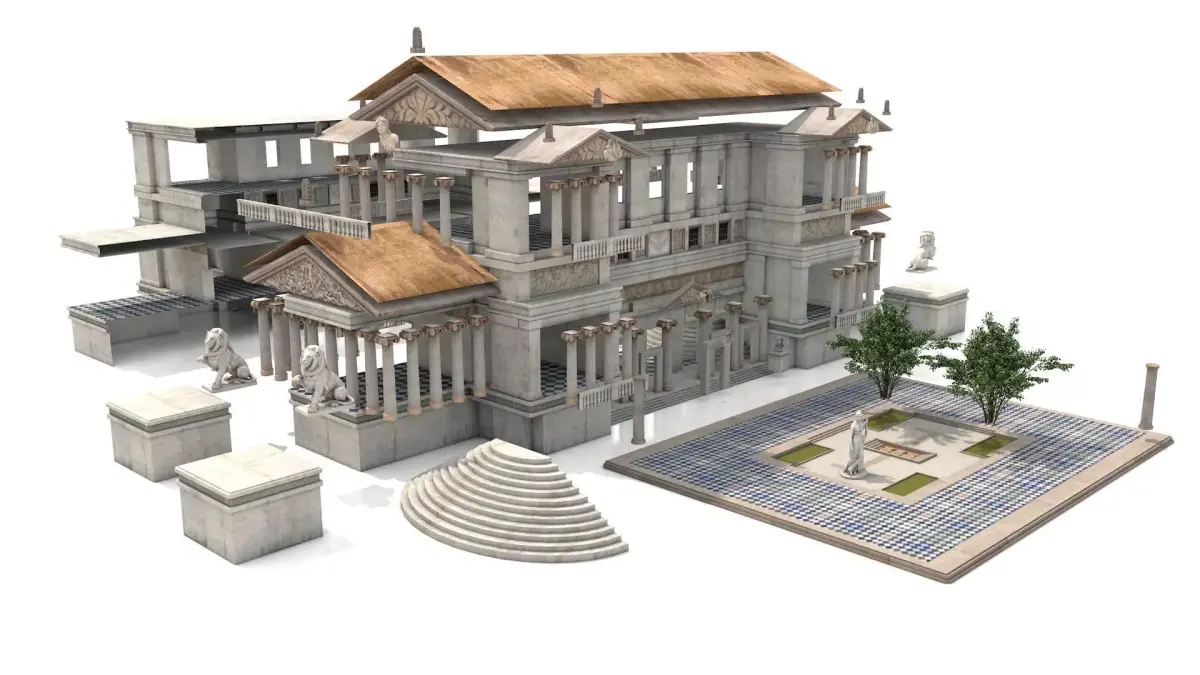 Product Description:This high-quality modular classical building is designed for maximum flexibility and realism. It can represent a Greek temple, Roman palace, Renaissance mansion, or neoclassical structure, making it ideal for games, animation, archviz, historical reconstructions, or fantasy environments.The model includes prepared interiors, allowing full customization and set dressing inside the structure. All parts are separated into modular elements so the buyer can rebuild, extend, or reuse individual sections in other projects.
