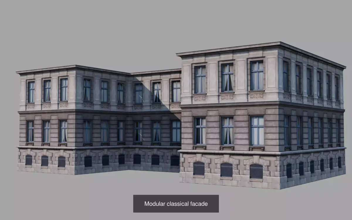 A versatile collection of three modular classical facades inspired by European urban architecture. This bundle is designed to help artists quickly assemble detailed and believable city environments while maintaining visual consistency across multiple buildings.