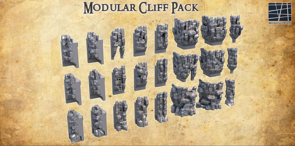 HomeCatalogModular Cliff Pack Tabletop Terrain 28 MM 3D print model