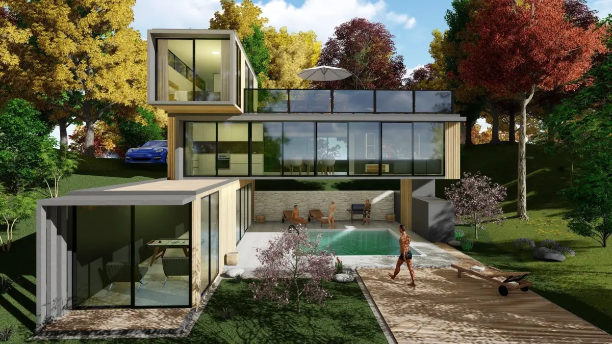 Modern modular container home 3d model is mado of 3 x 40 ft and 1x 20 ft container.CustomizedDue to their shape and material, shipping containers can be easily modified to fit many purposes.Strength and durabilityShipping containers are designed to be stacked in high columns, carrying heavy loads. They are also designed to resist harsh environments, such as on ocean-going vessels or sprayed with road salt while transported on roads. Due to their high strength, shipping containers are usually the last to fall in extreme weather, such as tornadoes, hurricanes, and tsunamis.ModularAll shipping containers are the same width and most have two standard height and length measurements and as such they provide modular elements that can be combined into larger structures. This simplifies design, planning and transport. As they are already designed to interlock for ease of mobility during transportation, structural construction is completed by simply emplacing them. Due to the containers' modular design, additional construction is as easy as stacking more containers. They can be stacked up to 12 units high when empty.LaborThe welding and cutting of steel is considered to be specialized labor and can increase construction expenses, yet overall it is still lower than conventional construction. Unlike wood frame construction, attachments must be welded or drilled to the outer skin, which is more time consuming and requires different job site equipment.TransportBecause they already conform to standard shipping sizes, pre-fabricated modules can be easily transported by ship, truck, or rail.AvailabilityBecause of their wide-spread use, new and used shipping containers are available across the planet.ExpenseMany used containers are available at an amount that is low compared to a finished structure built by other labor-intensive means such as bricks and mortar — which also require larger more expensive foundations.[citation needed]Eco-friendlyA 40 ft shipping container weights over 3,500 kg. When upcycling shipping containers, thousands of kilograms of steel are saved. In addition when building with containers, the amount of traditional building materials needed (i.e. bricks and cement) are reduced. Modern , completely finished ,modular container home with terrace and roof top terrace .. Unique designed,highly detailed model with lot of useful 3D models and furniture in it and lounge on terrace..Model contains house with all the furniture in ,living room,kitchen , bedroom, terrace..,sink,faucet,,sofa,bed TV,outdoor lounge,dinning table,.) And also lot of decoration.there is nice terrace .Different facade variables are possible. Also feature a custom design tv set and kitchen with dinning table ... Kitchen is actually designed for a known customer and contains,hood,sink,table ,chairs... Suitable for sea site area as for the mountain areas. Model is done with sketch up 2017 pro and rendered with lumion. All textures appliances and furniture equipment are in high resolution,have been checked and are included in scene.Textures are in zip file.Model is easy to manipulate and ready to render with enscape. Real world scale and exact proportions cm. Realistic and correctly scaled ! • Excellent polygon & texture efficiency Purchasing this model , you get files in different formats as :skp, obj,3ds,dwg or ask designer for different formats.3DS Max users can import sketchup 2008 file format. Additional Textures provided with the model: