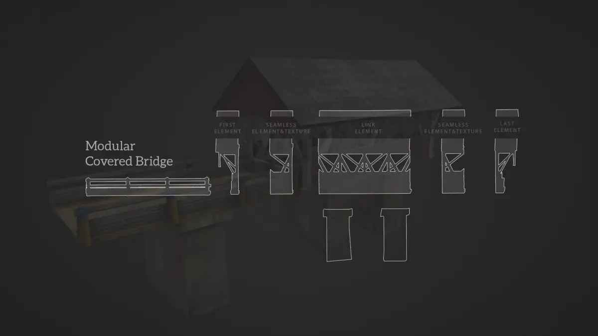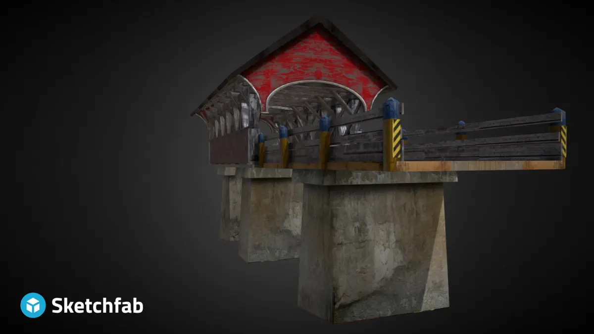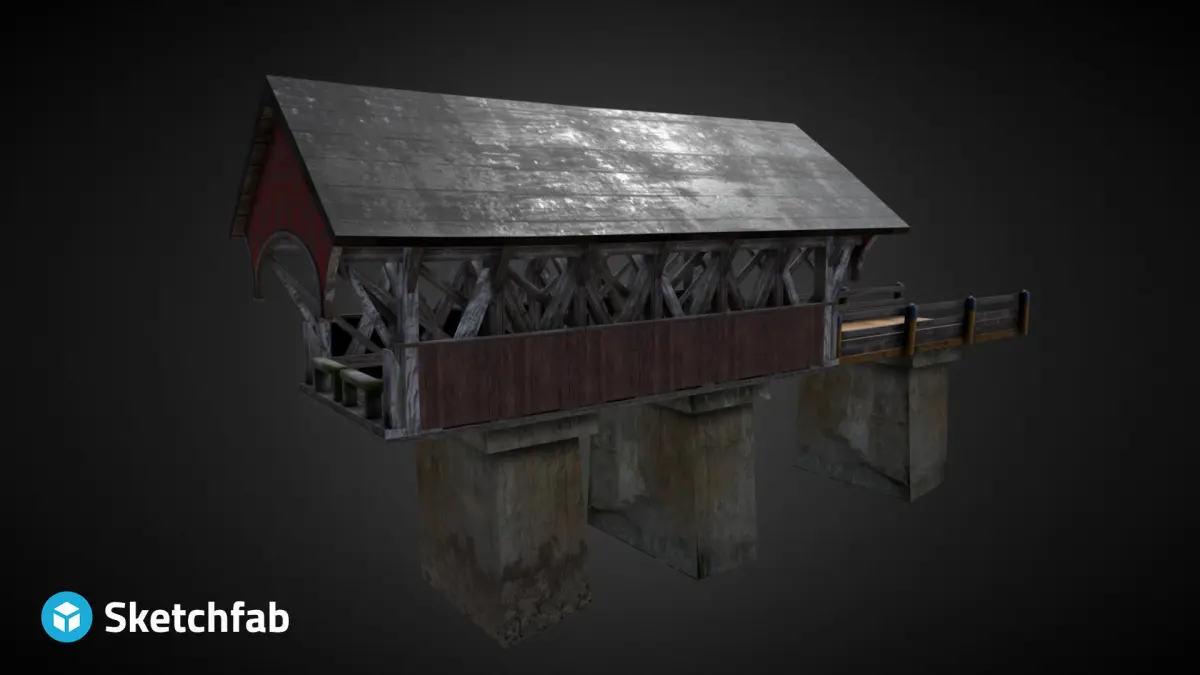 A old covered bridge with texture. This is designed to work well on gaming engine. It was created with blender (Cycles materials) and the file formats include an *.FBX, *.3DS, *.Dae, *.obj *.Package