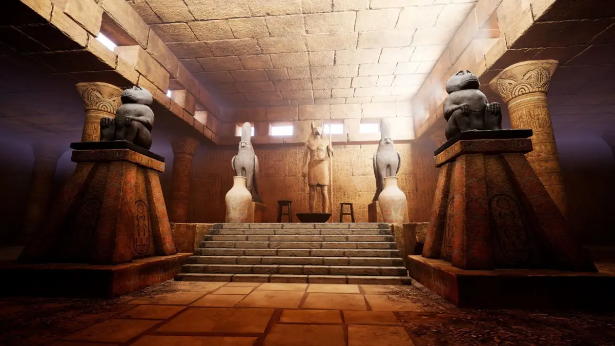This modular asset pack allows you to build an ancient Egyptian temple or various buildings in the setting of Ancient Egypt. In addition to various types of walls, several types of columns are included in the asset package, as well as sculptures such as: sculptures of the Cryosphinx, Sphinx, Horus in the form of a falcon, a stone statue of Anubis, as well as a statue of the pharaoh. In addition, some sculptures have destroyed versions.