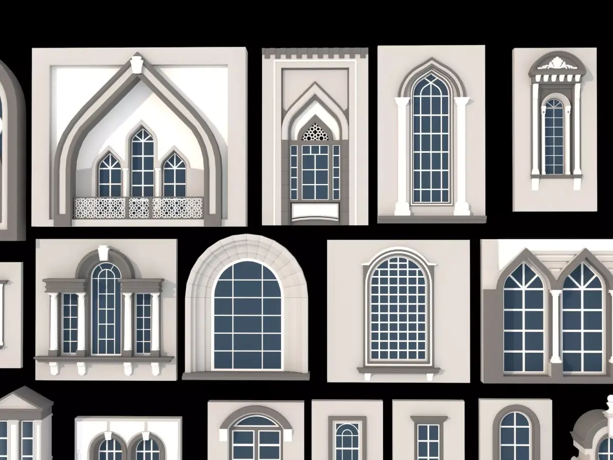 This Architectural Windows Pack is a comprehensive collection of classic, gothic, and neo-classical European style windows, designed for architectural visualization, games, films, and environment design.The pack includes a wide variety of arched, rectangular, triple-arched, cathedral, decorative, and ornamental window designs, suitable for historical buildings, churches, villas, palaces, and old town environments.Each window is built with clean topology and modular proportions, making it easy to integrate into both real-time and offline rendering pipelines.Features:Over XX unique window models (single, double, triple, arched & decorative)Styles: Gothic / Classical / Neo-Classical / EuropeanModular design – easy to resize and combineClean geometry, game-ready topologySuitable for architectural visualization, games, films, VR, and metaverse projectsNeutral materials, easy to customizeConsistent scale and proportionsUse Cases:Historical architecture scenesChurches & cathedralsEuropean old townsCastles, palaces, manorsStylized or realistic environment design