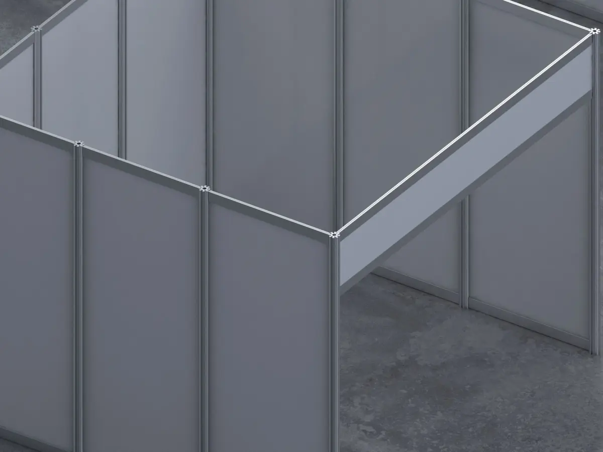 Is an Octanorm Aluminium PVC Panel Shell Scheme Standard Booth, basic modular stand.