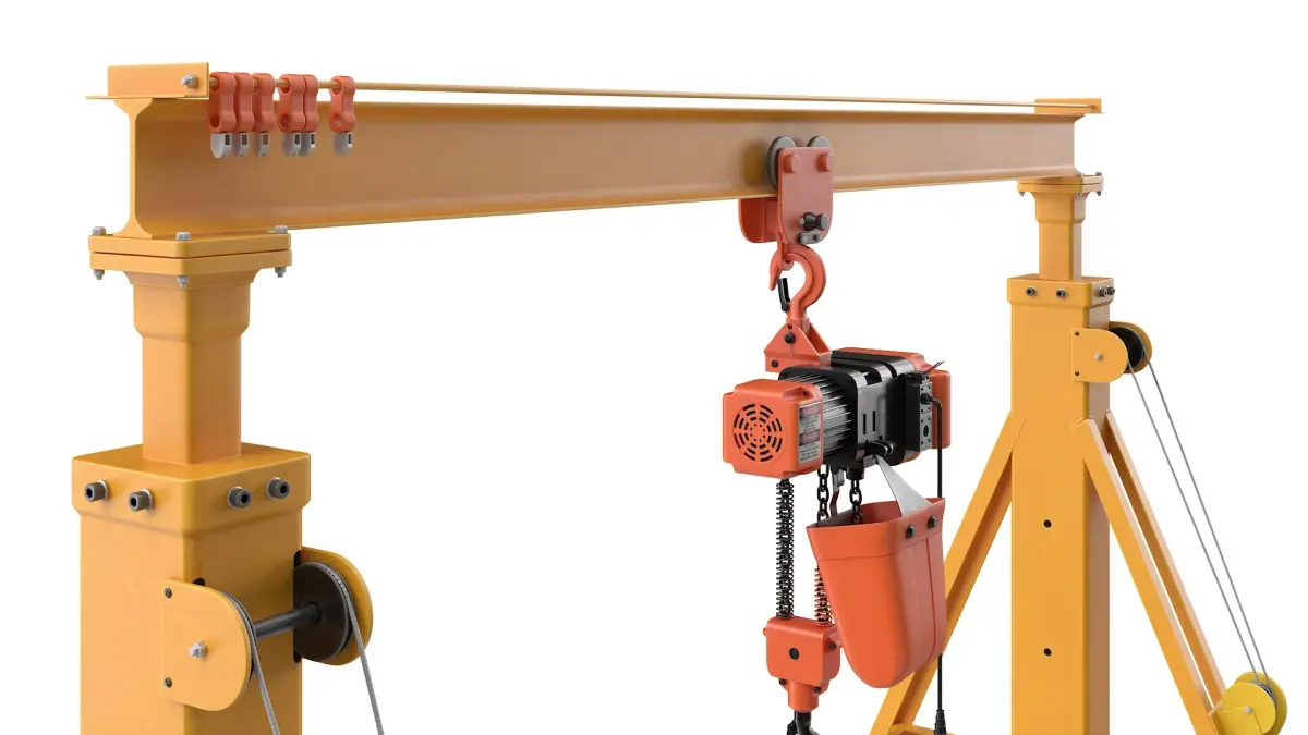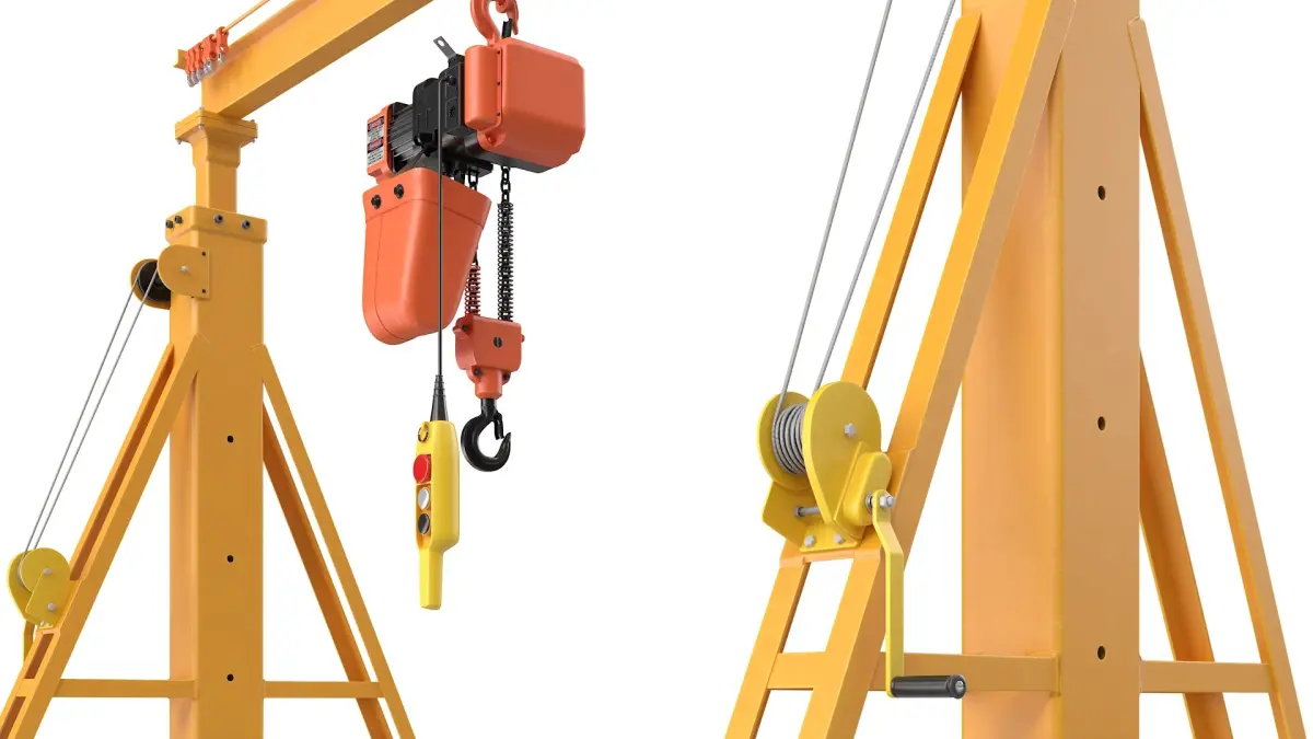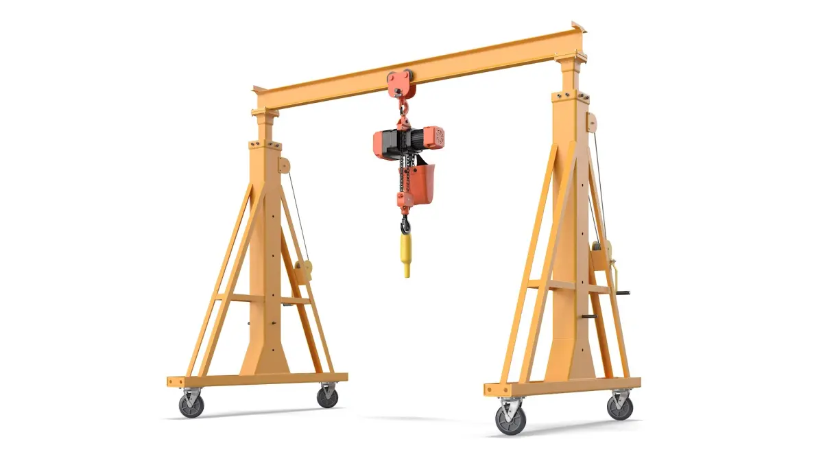 The portable lifting apparatus is a mobile gantry crane designed for material handling and maintenance work. It allows lifting and relocating heavy loads efficiently, making it a practical tool across warehouses, workshops, and construction sites.