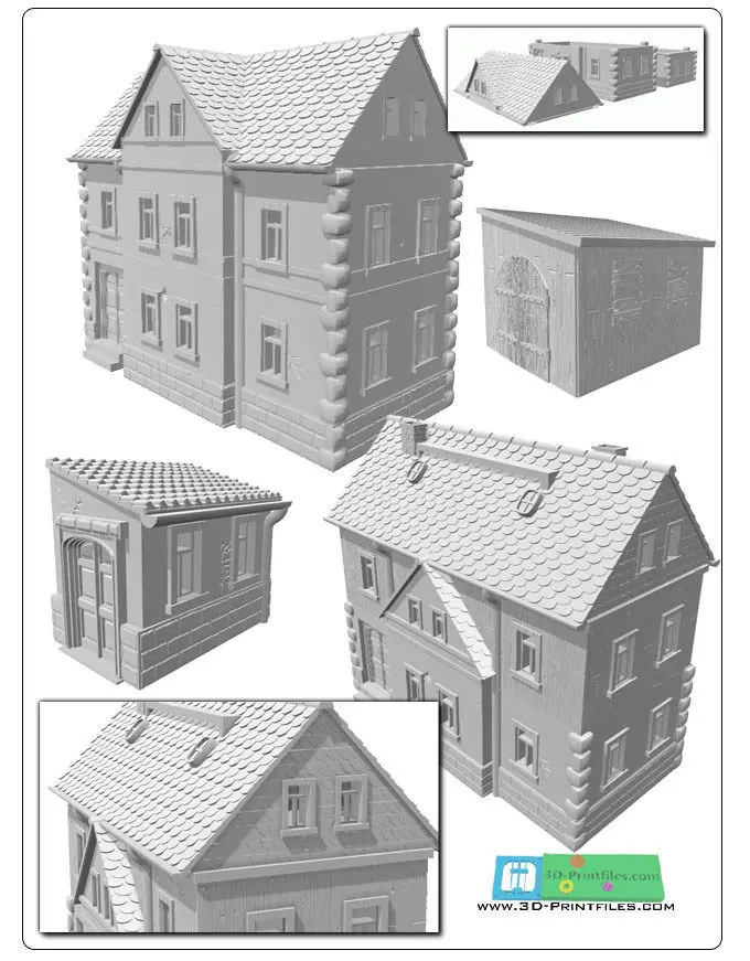 You will get all files to print this Building. This Building is modular and has more as one ground-floor, floor and roof (see below). You can build more as 4 different buildings with this parts. Perfect for build a small german village (example for WWII).Includes all necessary STL files to print the model on your own 3D printer. (No physical model included with your order.)