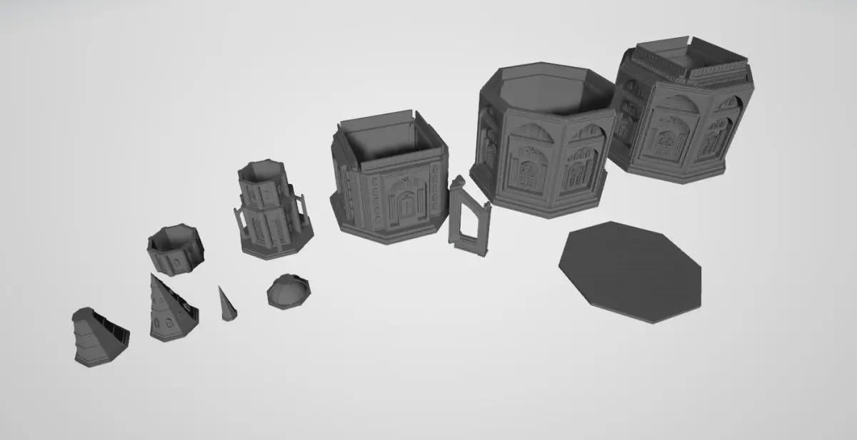 Also included in the kit are three variants of towers, with optional dome or turret toppers.