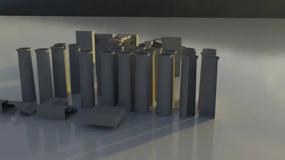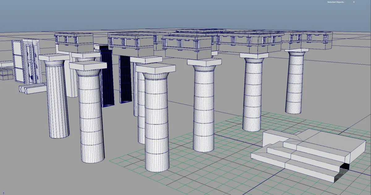 3 types of Doric columns with different LODs if you wish to use LODs (from 1500 to 150 poly for Column alone)3 types of half column (columns cut in half)Wall Status base ( for adding your own Statues)Door: low and high poly version Beams: for wood texture and stone one (basic difference is soft or hard bevel)Beams: Architrave (beams on capitol of columns) straight and angleFrieze: 2 poly sizes: 450 and 100 polys (they are same shape, but one is minimum Bevel used)Celling: Simple and detailedRoof: Front/Back face, Small roof and Main roof.Acroterion (Roof Ornament on top and sides of Temple roof)
