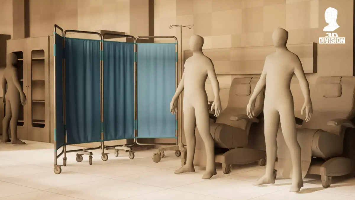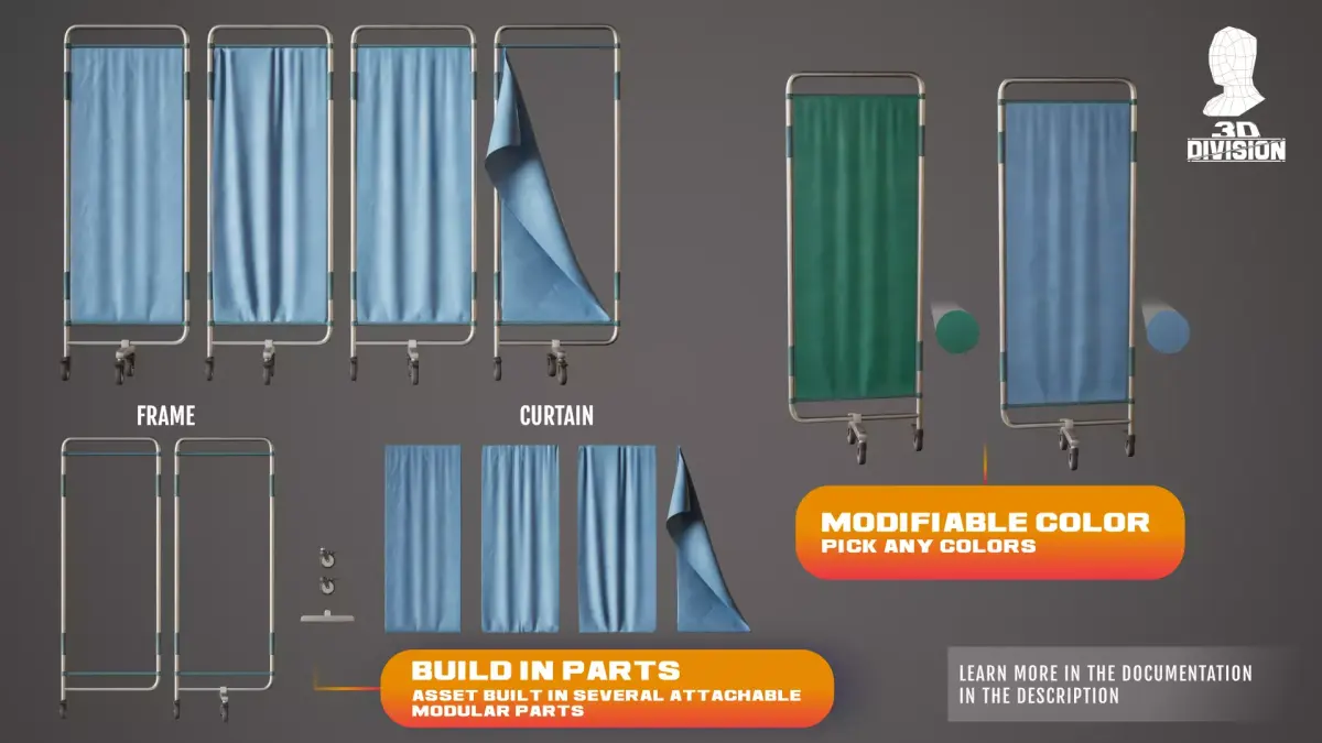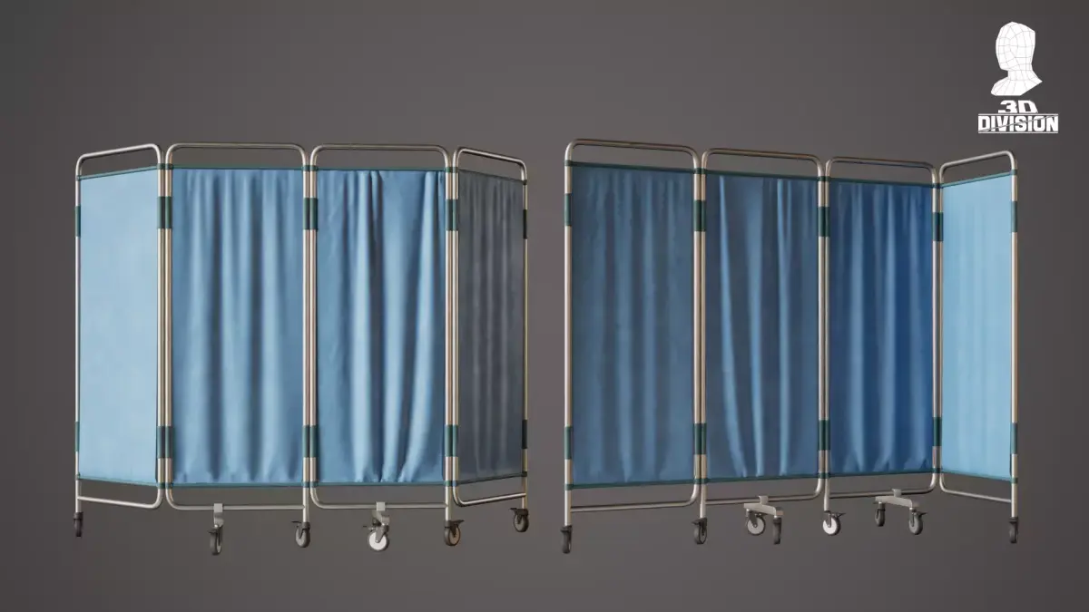 Low-poly, game-ready Modular Hospital Bed Screen with 4 main variations and real-time color customization via shader masks.