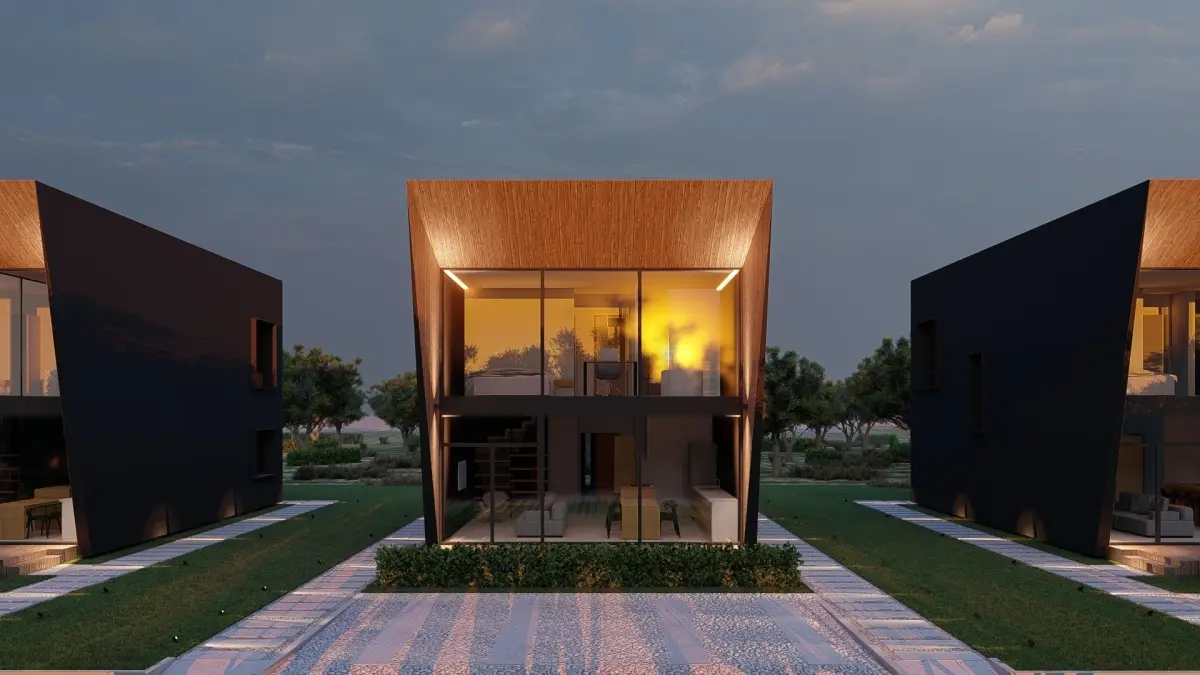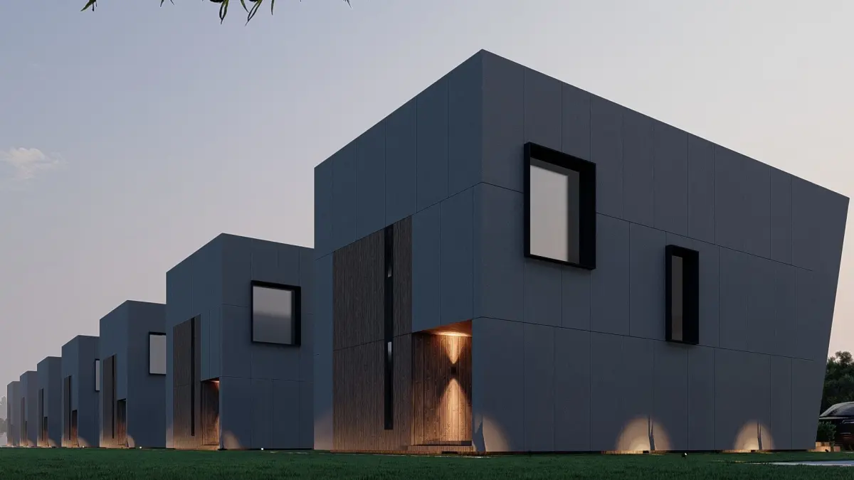 Modular house in brutalism styleI will send the .pla file to the buyerArchitectural concept for a modular house transported in sea containers. Made in Archicad 22Polygons 181858Vertices 94781