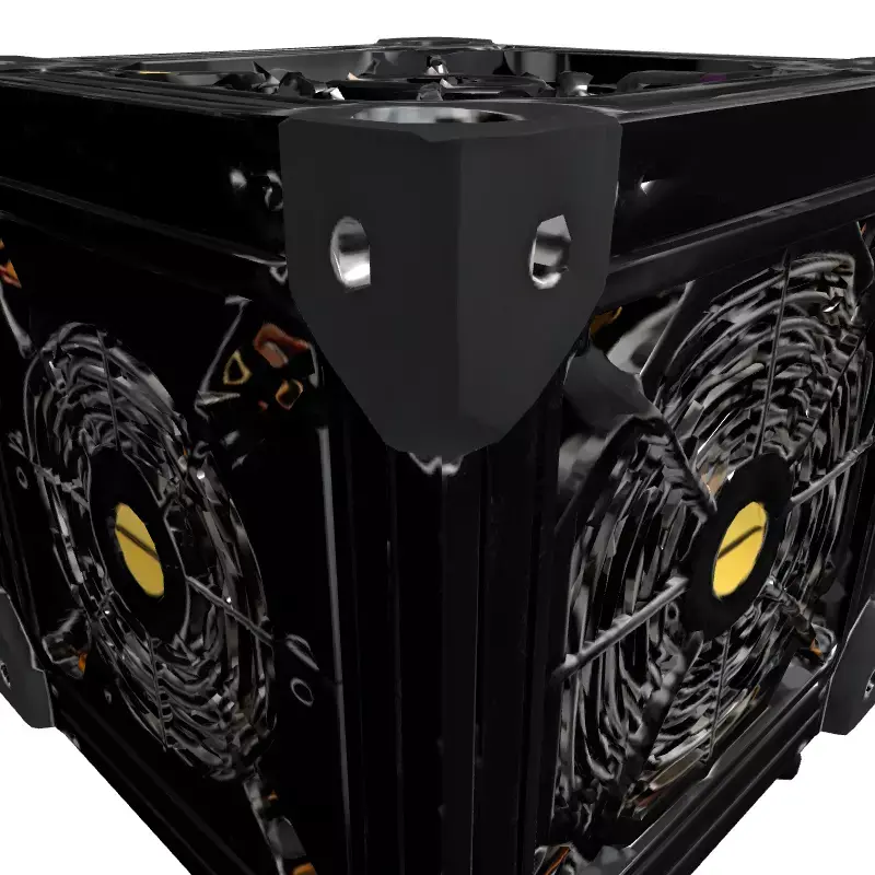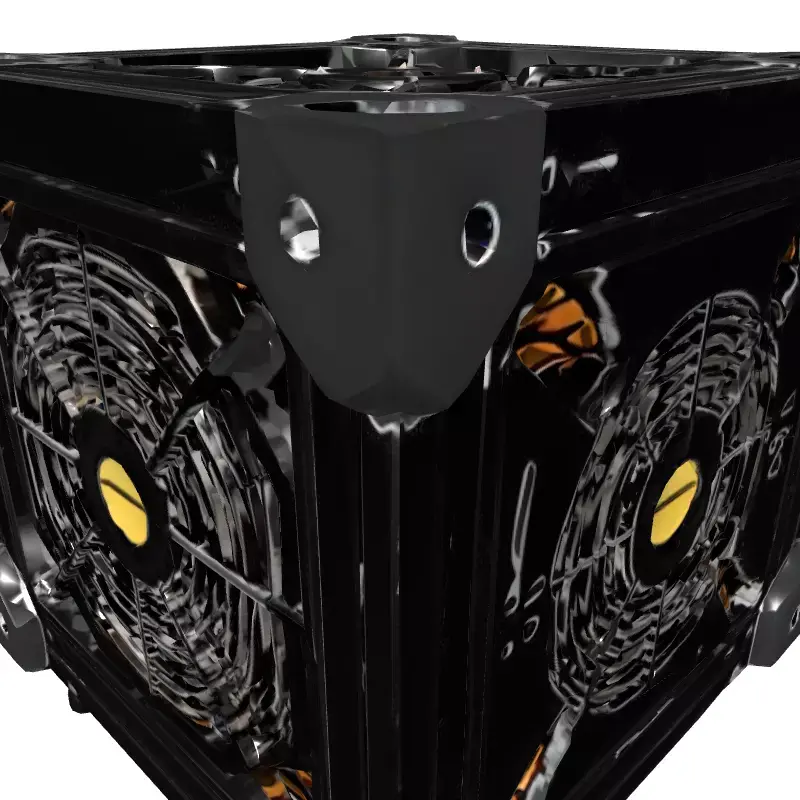 This is a meticulously crafted 3D model of a modular industrial cooling system or compact server unit, featuring a robust frame constructed from realistic aluminum extrusion profiles and durable corner brackets. The design incorporates multiple high-performance cooling fans strategically placed on its visible faces, alongside intricate internal components such as heat sinks and wiring, suggesting advanced thermal management capabilities. This versatile asset is perfectly suited for a wide array of applications, including integration into sci-fi environments, industrial scenes, or modern data centers within game development projects. It also excels in architectural visualization, digital art creations, product design concepts, and technical animations requiring detailed machinery. The model is optimized for high-quality static renderings and can be adapted for real-time applications like augmented reality (AR) or virtual reality (VR) experiences with appropriate optimization. It boasts clean, organized topology, ensuring smooth deformations if rigged or subdivided, and is fully UV unwrapped for easy texture application. While specific texture types are not listed, the model's design supports PBR workflows for realistic material representation. It is expected to be available in common 3D formats such as GLB, OBJ, FBX, USD, DAE, and potentially others like STL for prototyping or ABC for complex scene integration, offering broad compatibility across various 3D software and engines.