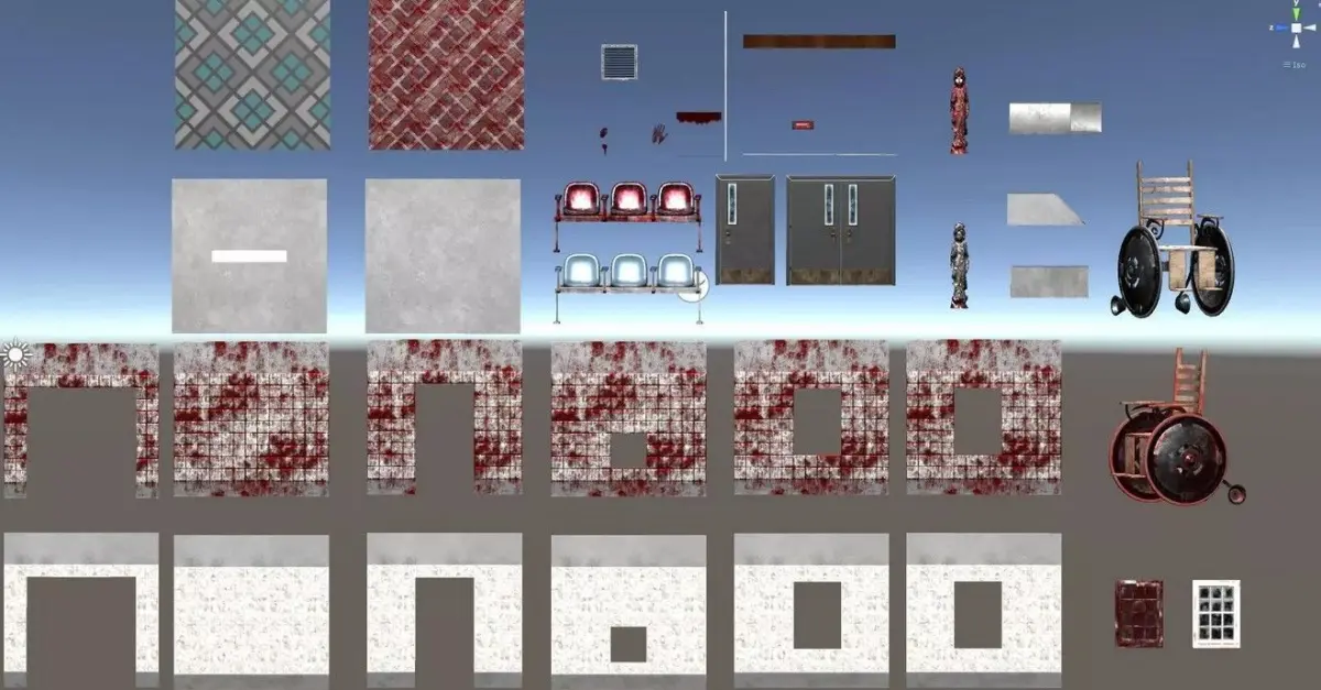 Low poly Modular horror interior design, 3d model ready for Virtual Reality (VR), Augmented Reality (AR), games and other real-time apps. High resolution textures, easy to downscale to 256x256