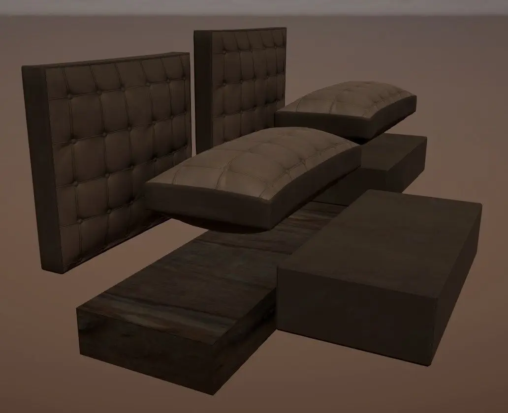 The two seat cushions, two back cushions, two leather seat bases and the wooden base are all separatable (so there are 7 meshes in total)
