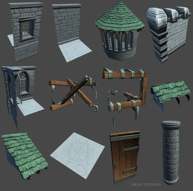 The images are taken in Unity 3d indie so the meshes are game ready and have 2nd uv sets for light mapping