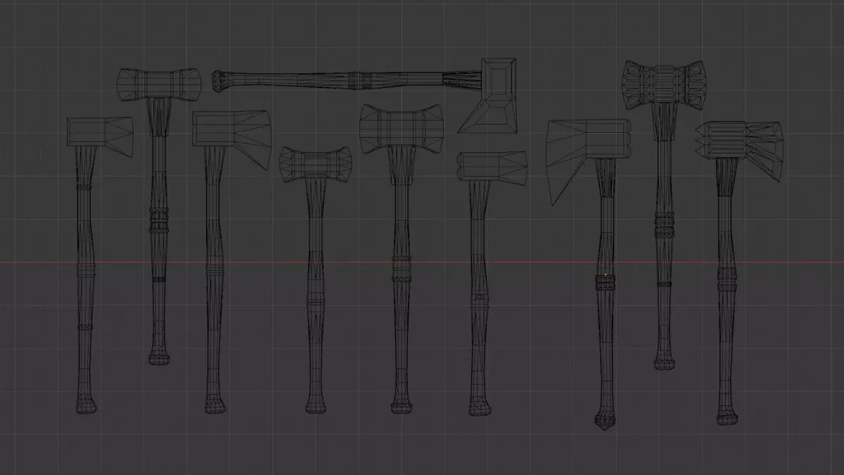 This pack contains only the axes from the larger Modular Melee collection.While the full collection supports over 50,000 unique combinations, this subset provides a complete set of modular axe variants suitable for manual assembly or integration into existing procedural weapon systems.