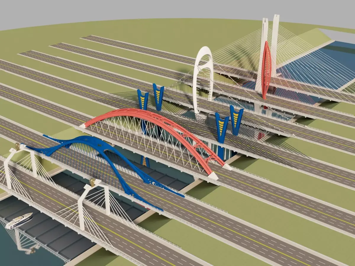 High-quality modular bridge 3D model collection, featuring multiple modern and conceptual bridge designs, including cable-stayed bridges, arch bridges, and suspension bridges.This asset is designed for urban planning, city visualization, transportation simulations, games, films, and architectural presentations.The bridges are built with a modular structure, allowing easy combination and layout customization for complex highway interchanges, river crossings, and multi-level road systems.Each bridge includes detailed road surfaces, guardrails, cables, pylons, and structural elements for realistic large-scale scenes.Multiple bridge types: cable-stayed, arch, suspensionModular design for flexible city layoutsClean topology suitable for real-time and offline renderingConsistent scale and realistic proportionsOptimized geometry for large environmentsSeparate elements for easy editingPBR-ready materials (easy to customize)Suitable for close-up and aerial viewsCity & infrastructure visualizationGames and real-time enginesArchitectural & civil engineering presentationsFilm, animation, and cinematic scenesTraffic simulation projectsVehicles, boats, environment elements shown in previews are not includedLighting and render settings may vary depending on the software usedThis bridge collection provides a versatile and professional solution for creating realistic modern transportation environments.all the model and OBJ files created with 3dsmax 2020Thank you for purchasing my model