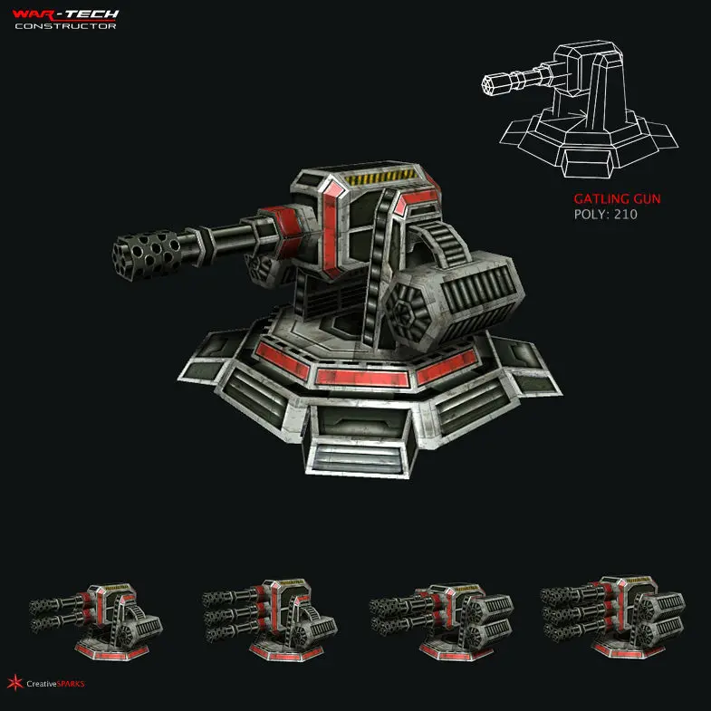 WAR-Tech Constructor 01: Ideal designed for top down, tower defense and FPS games. With a huge number of combination possibilities and highly modular, letting the developer/designer puzzle together their own creations. Tested in Unity 3D game engine.