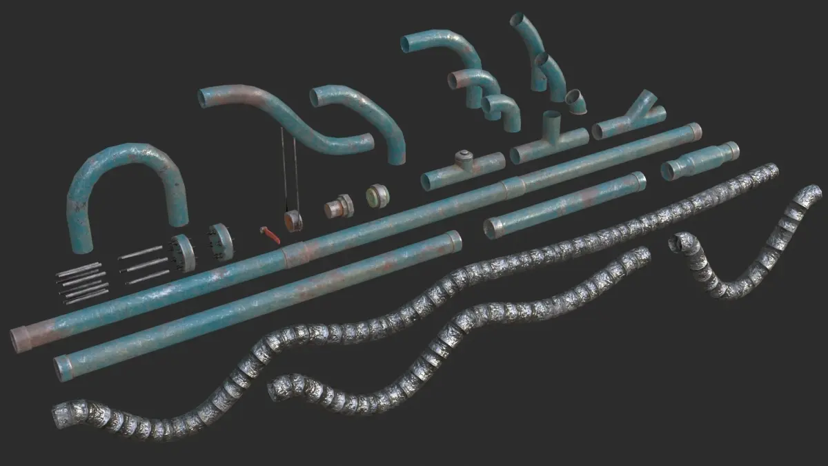 This modular pipes asset pack including 27 individual set Ø10 pipes with 4 LODs and colliders to get the best optimization and the best quality. All elements can easily be positioned together by moving in 10cm increments. Also, this pack includes 37 pre-assembled sets to allow you to speed up your assemblies and also to inspire you on the different ways of composing the elements together.The 3D files are also optimized for use in Unity and Unreal Engine with textures adapted to these 2 game engines available in PNG / 4K.