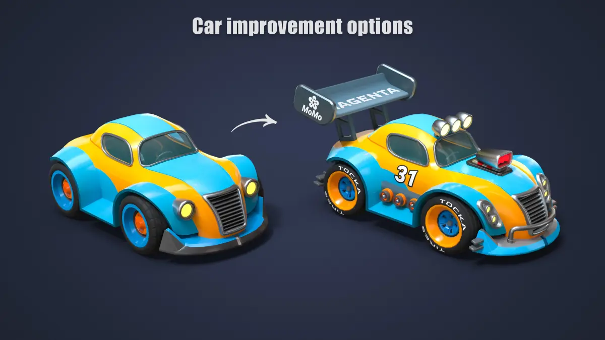 This modularity allows you to build an intuitive and flexible upgrade system, and generate a wide variety of unique car variations — all within a unified asset structure.