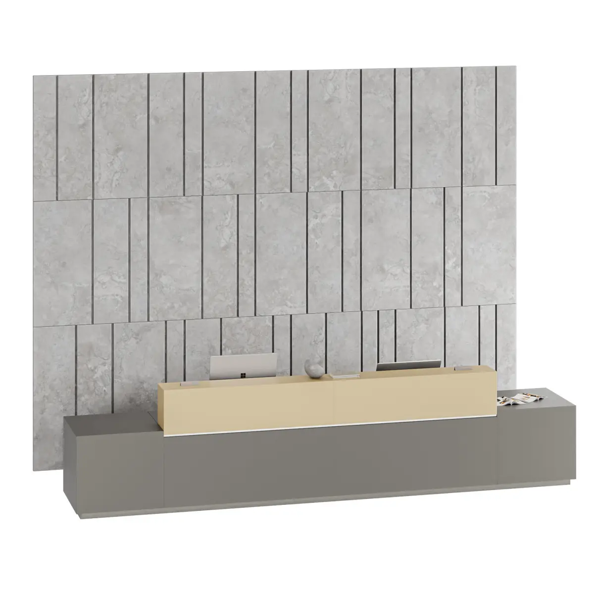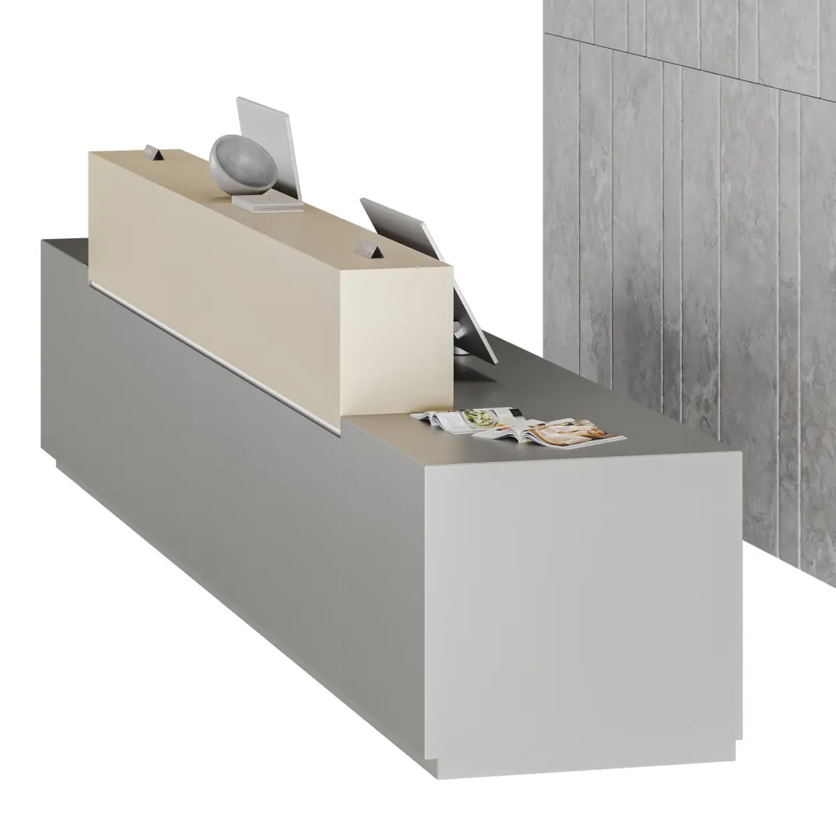 Z1 Reception is characterized by rigorous and elegant lines that combine style and functionality in a modular product. Z1 evolves with impressive volumes that furnish without being overwhelming.