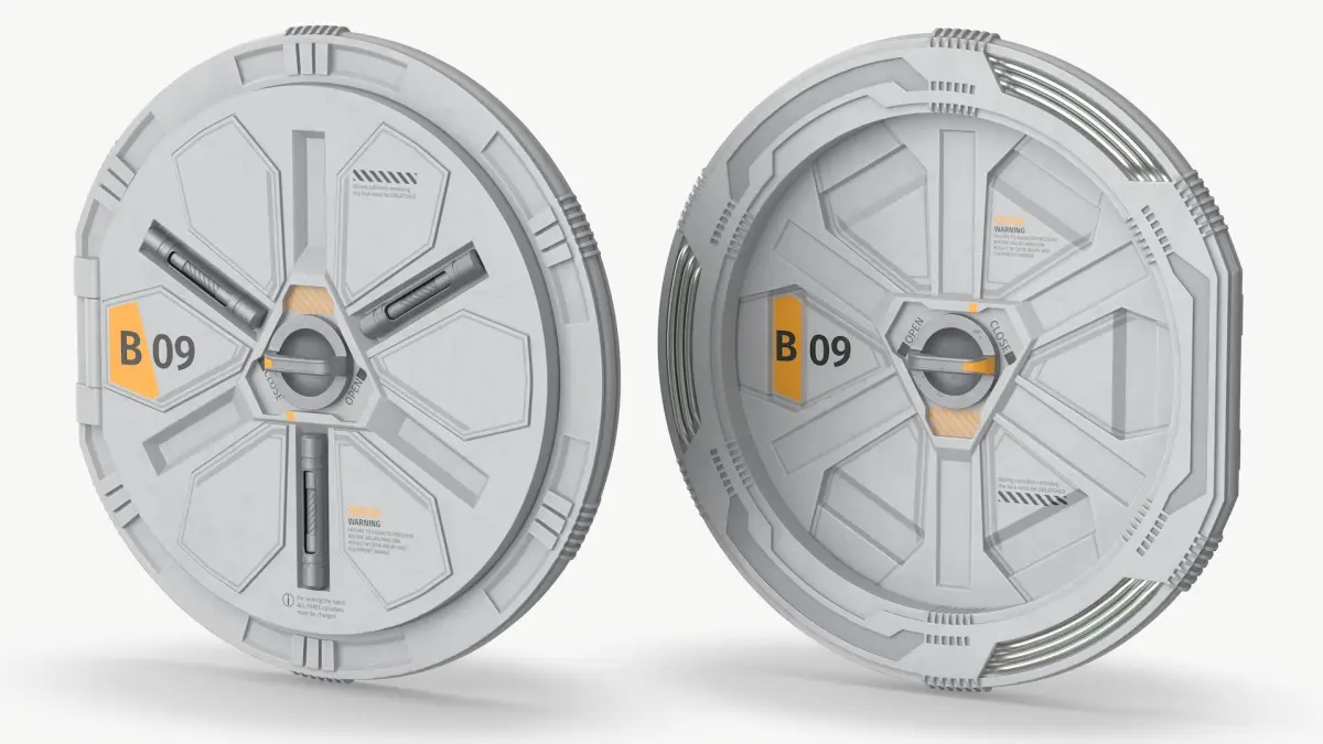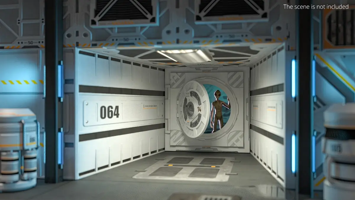 For space station environments, sci-fi ship interior design, futuristic laboratory access systems, industrial safety equipment simulations, architectural visualizations, video game assets, VR training facilities, and cinematic set dressing in high-tech themed productions.