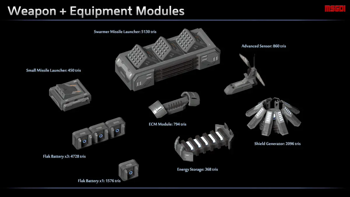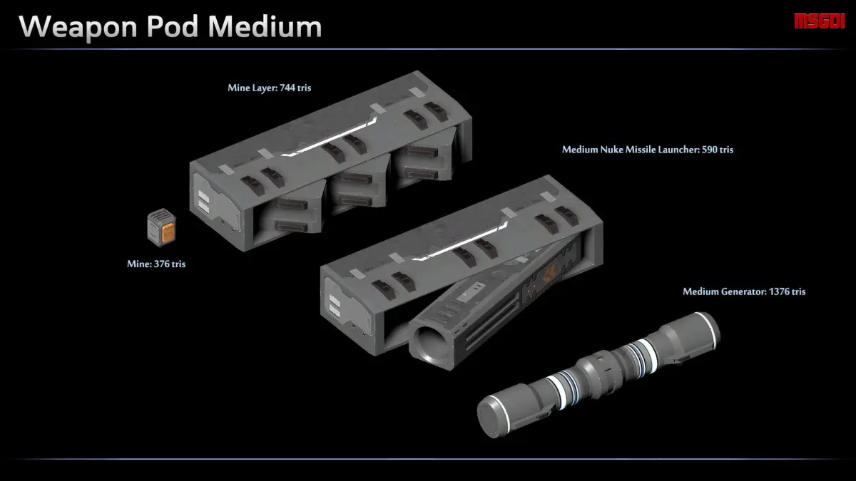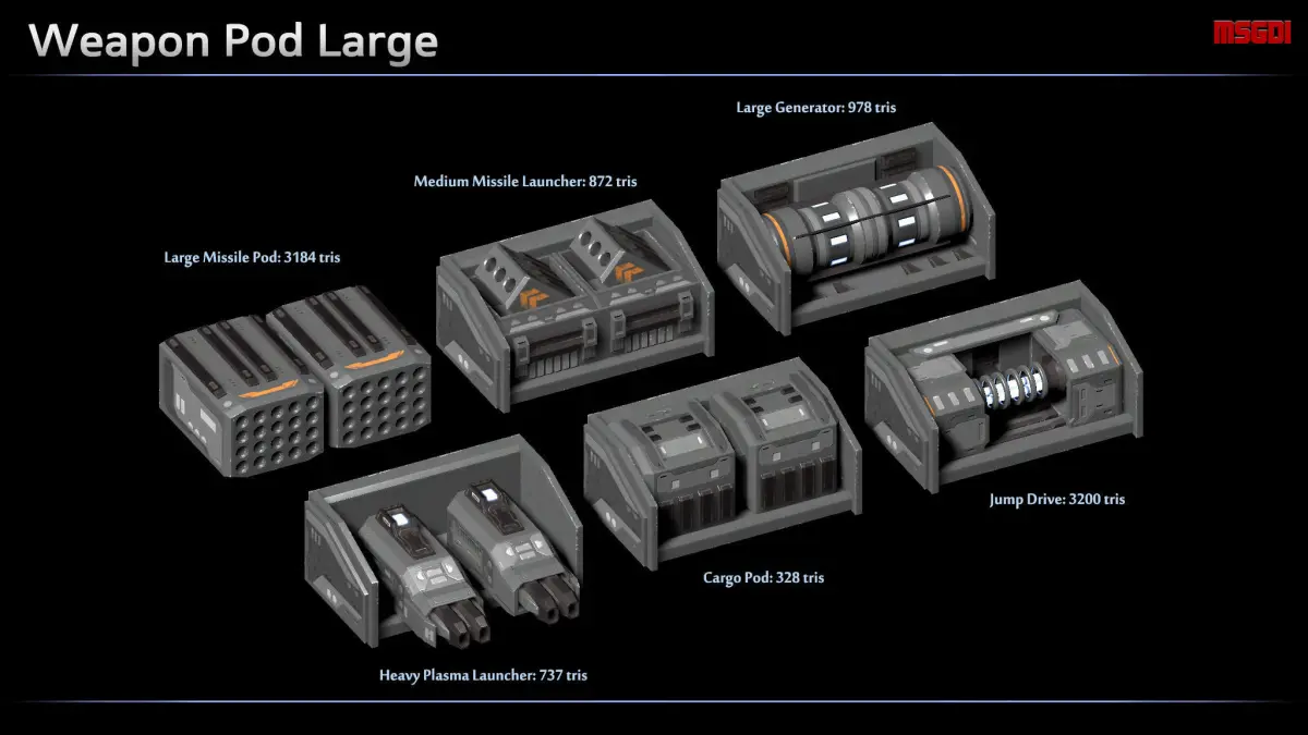 This pack contains various scifi weapons and equipment parts. They can be used to equip/upgrade your spaceships.