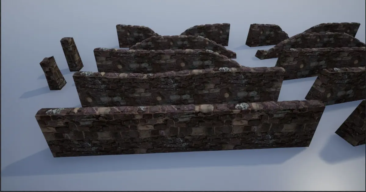 For those who want the least amount of poly and tri counts, lowpoly versions are available without the stones on top of the walls, in seperate files(with same names be carefull). Total 34 Meshes.